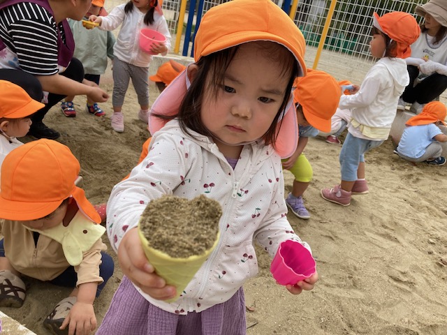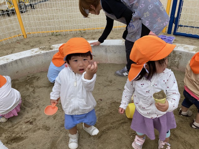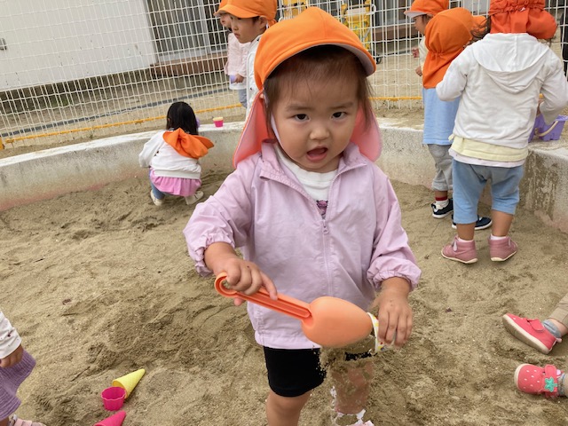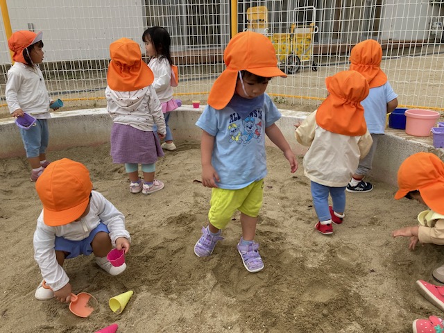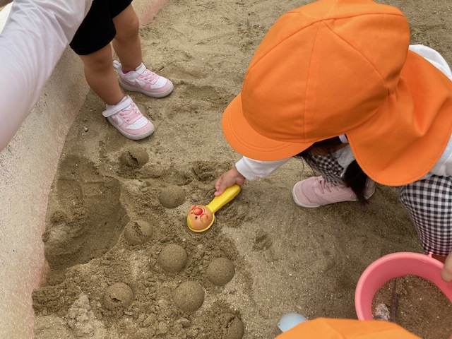 今日は、公園に行って砂遊びを楽しみました(^^)