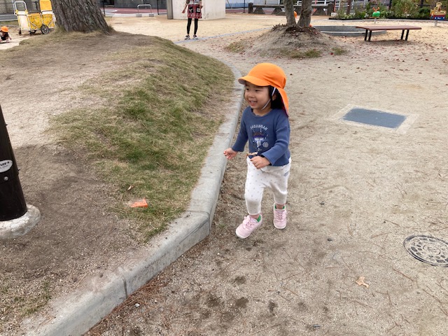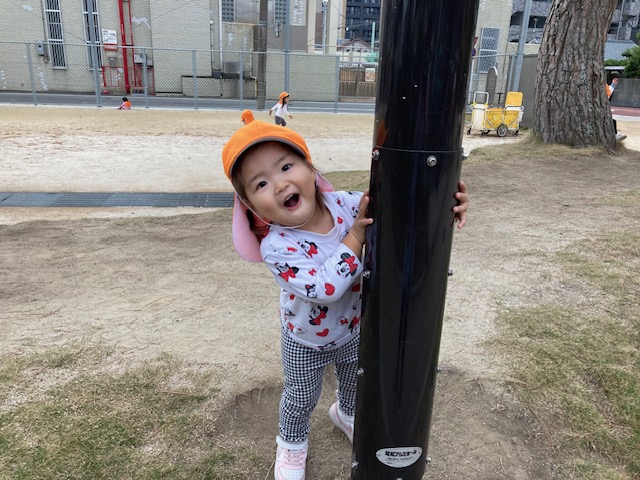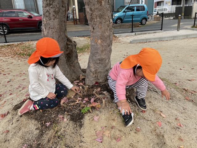 よいしょっと、木の根元に座って休憩しながら遊びました