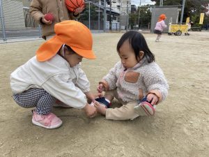 靴下と靴を脱いでしまったお友達に