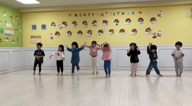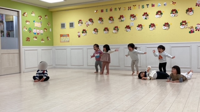 ニコニコでお遊戯を踊ったり、お名前を言ったりしています