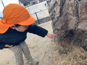 木の根元で何か発見