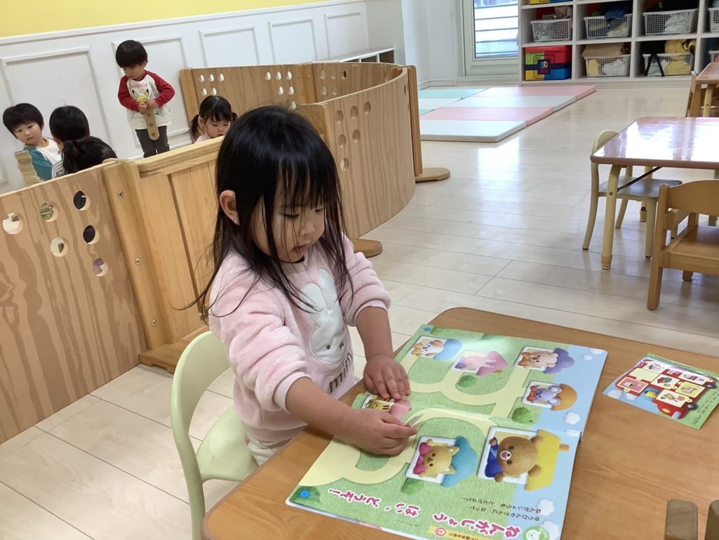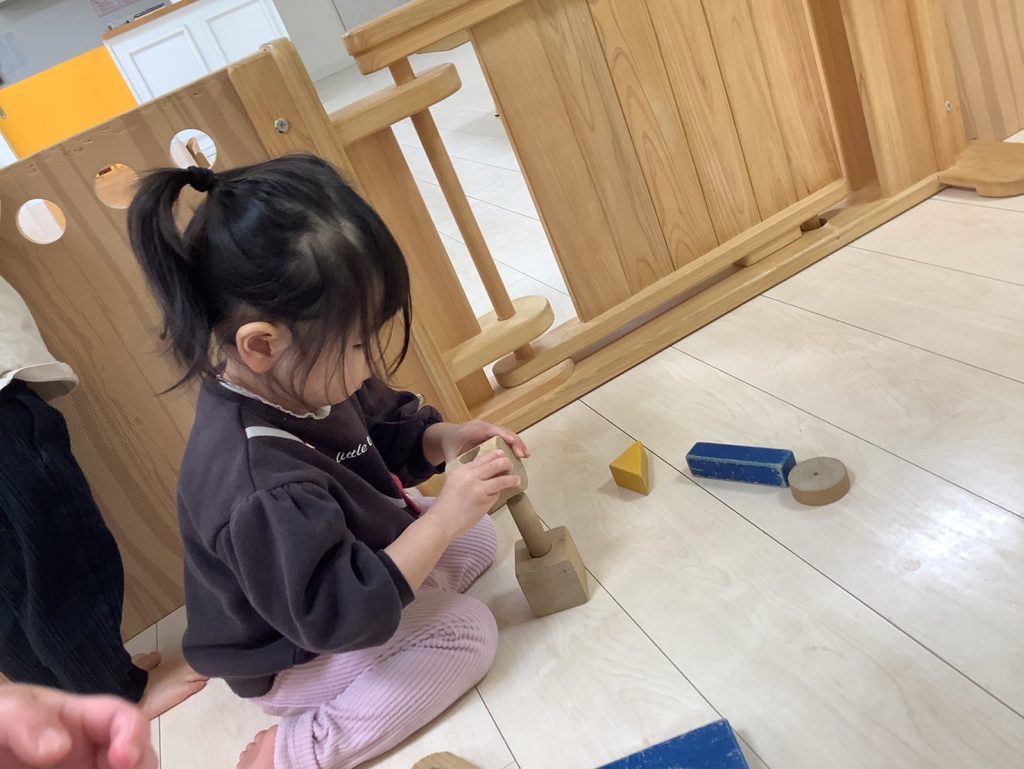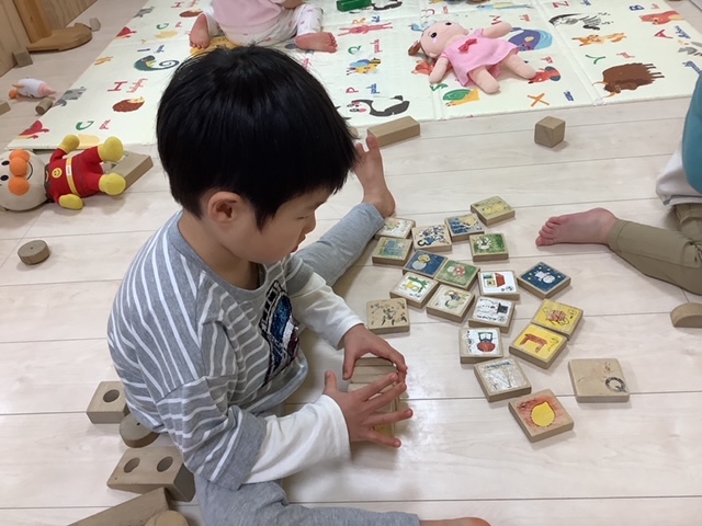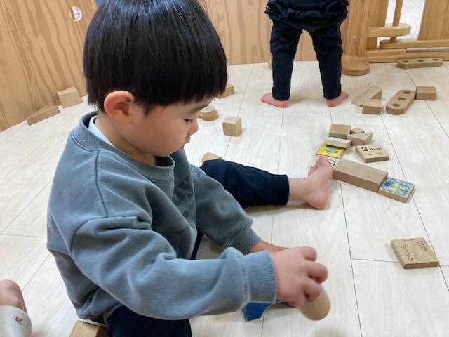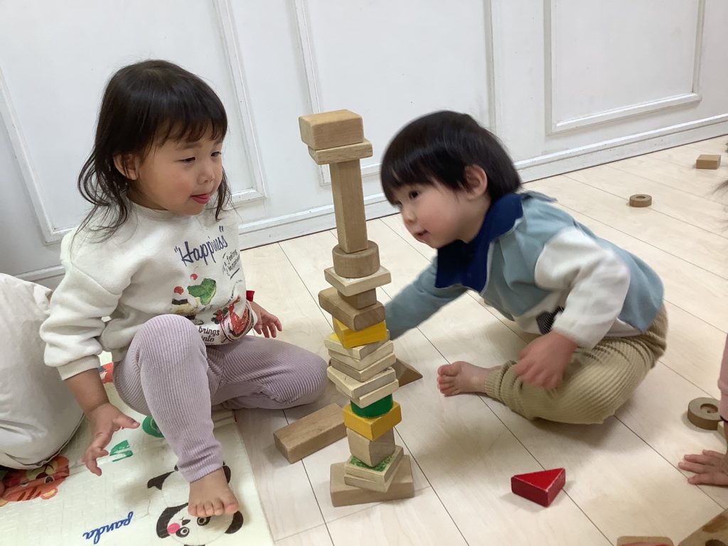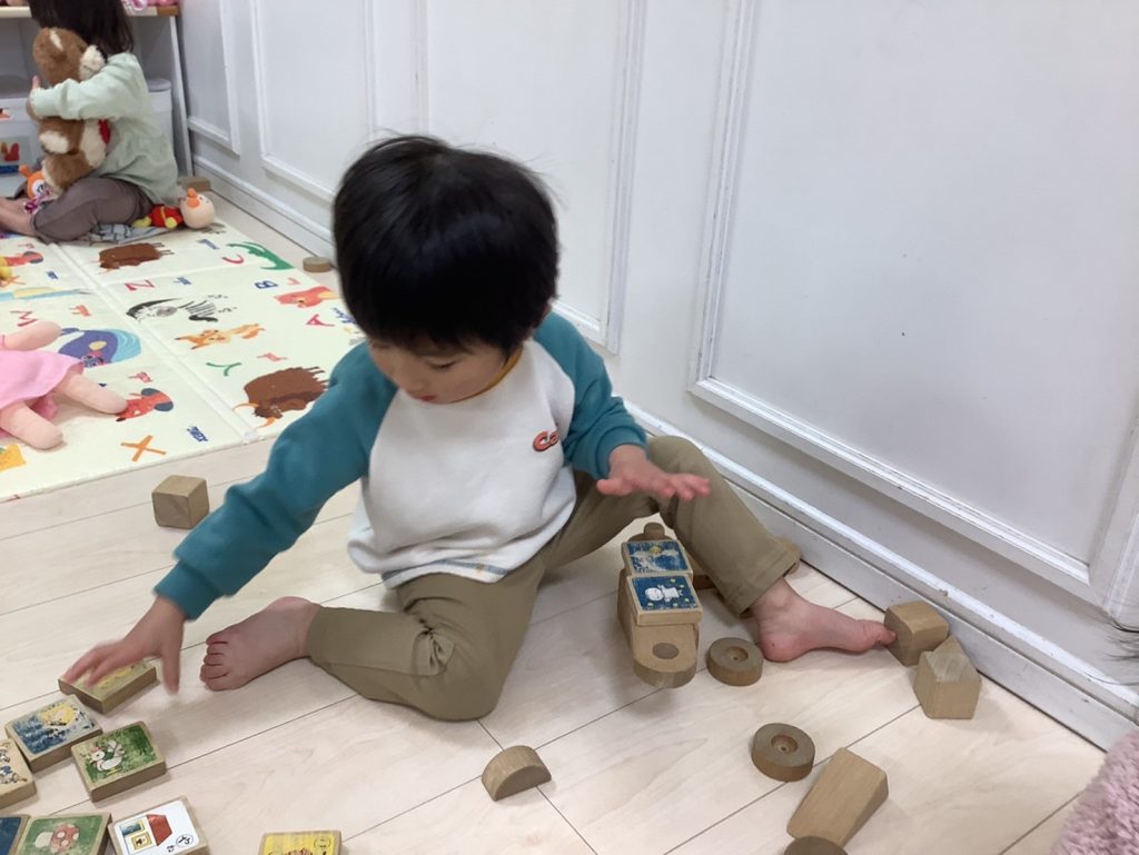 お部屋では、積み木で遊んでいます