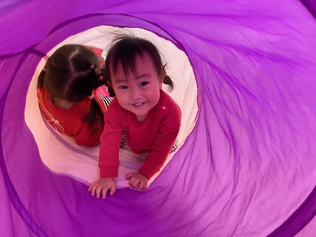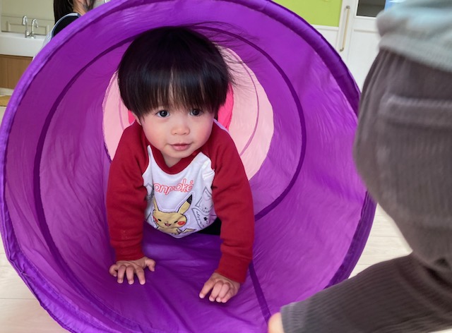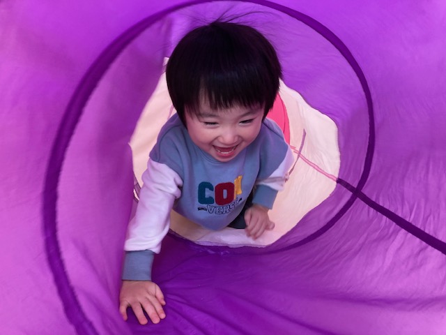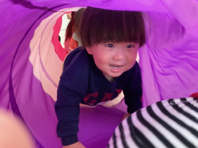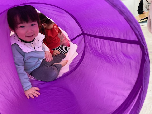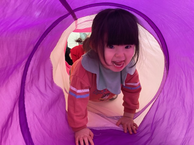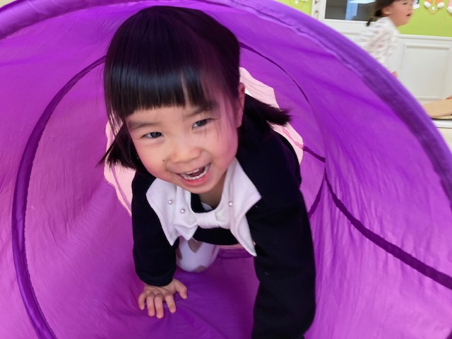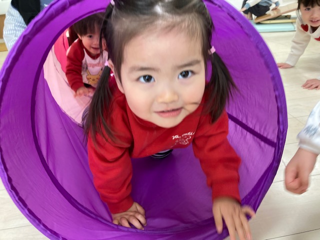 身体測定をした後は、トンネルくぐりなど、