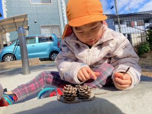 松ぼっくりと木の枝をつかって