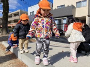段差を使って電車ごっこ