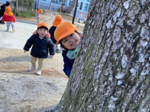 木の陰から「いないいないばあっ!」をしている