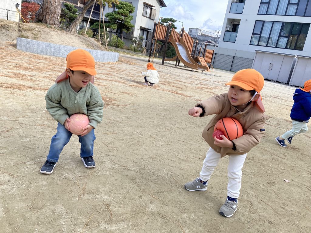12月になり、やっと冬らしい 気候になりました 感染症が流行する時期でも あるので体調には気を付けて いきたいですね 今日は、クリスマス会の練習をした後 室見公園に行きました ボールを持って行って、ボール遊 …