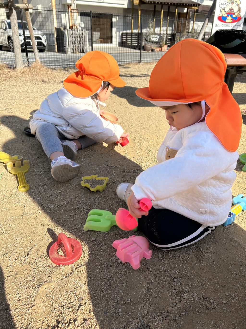 ひよこ組さんとりす組さんは、公園に行きました 先生の所まで、よーいどん いっぱい走って体もぽかぽか お砂でも遊んだよ スコップで上手に砂をすくって型の中に入れてみるなど、上手に遊ぶ姿も見られました 福笑いにも挑戦したよ …