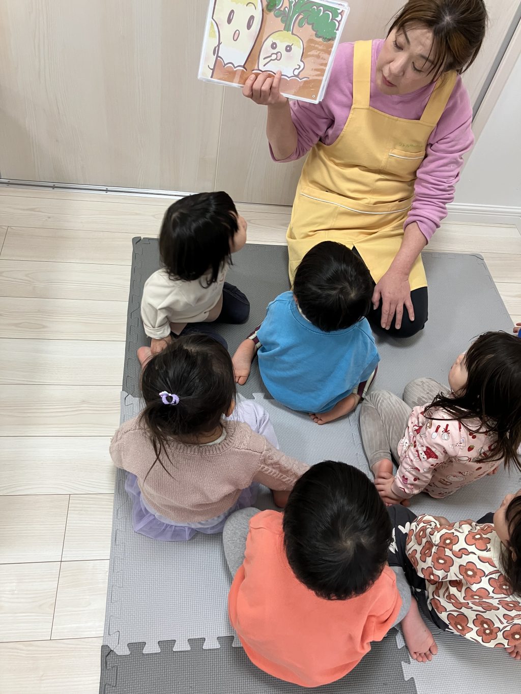 今日は食育の日!大根のお話を見たよ ひよこ組さん、りす組さんは明石公園にお散歩に行ったよ どんぐりを見つけたよ シャボン玉もしたよ! ねずみ組さんは材木町公園に行ったよ!