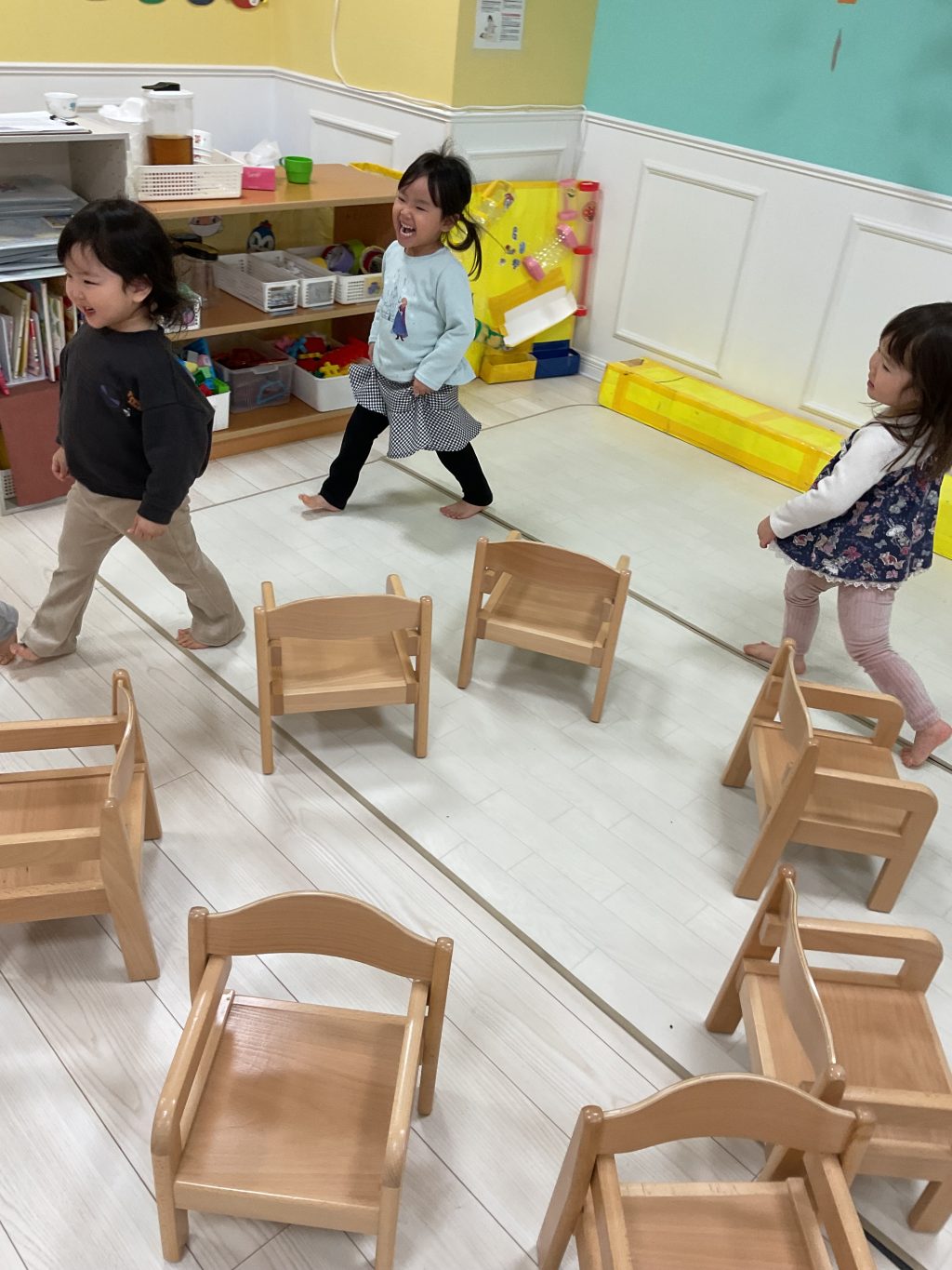 ねずみ組さんは椅子取りゲームをしたよ ひよこ組、りす組組さんは明石公園にお散歩に行ったよ 絵本や図鑑を見たよ 今日のお散歩で見た動物やお花あったかな?? パズル遊びもしたよ 明日もたくさん遊ぼうね