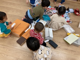 今日はSDGs:廃材遊びをしました! 空き箱やペーパー類の芯 家庭から持参して頂きありがとうございました ひよこグループさんはR1の容器で作ったマラカスを シャカシャカ鳴らして遊んだり大きな空き箱や芯など 気になる廃材を …