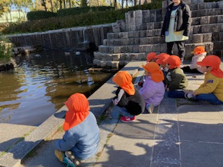 風が冷たく、とても寒い朝でしたが、今日も子どもたちは元気に過ごしています ひなた組は、近くの駅までお散歩へ 途中、池を見つけて眺める子どもたち。何かいるかなぁ 駅に着いて、いろんな電車をみて大喜びの子どもた …