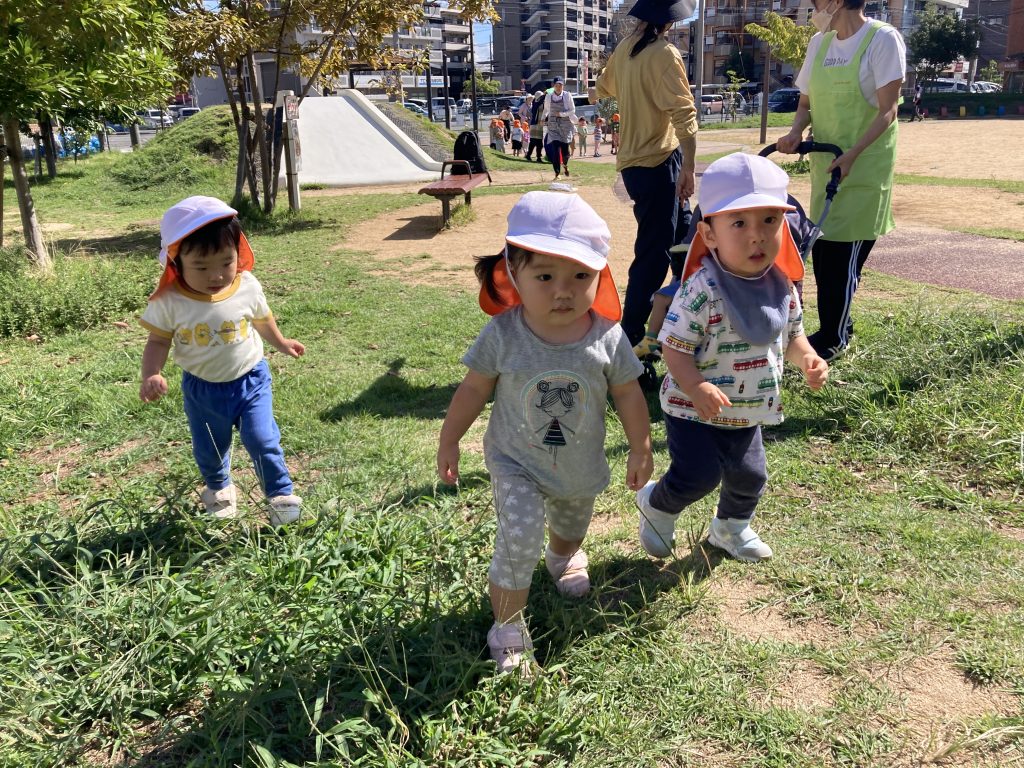 朝晩が涼しくなり、今日はとても過ごしやすい気候でした りす組、ねずみ組は公園に遊びに行きました。 クラスが違うお友だちとも一緒に遊んだよ バッタやダンゴムシなどの虫もみ〜つけた 「も〜い〜かい」とかくれんぼをする子どもた …