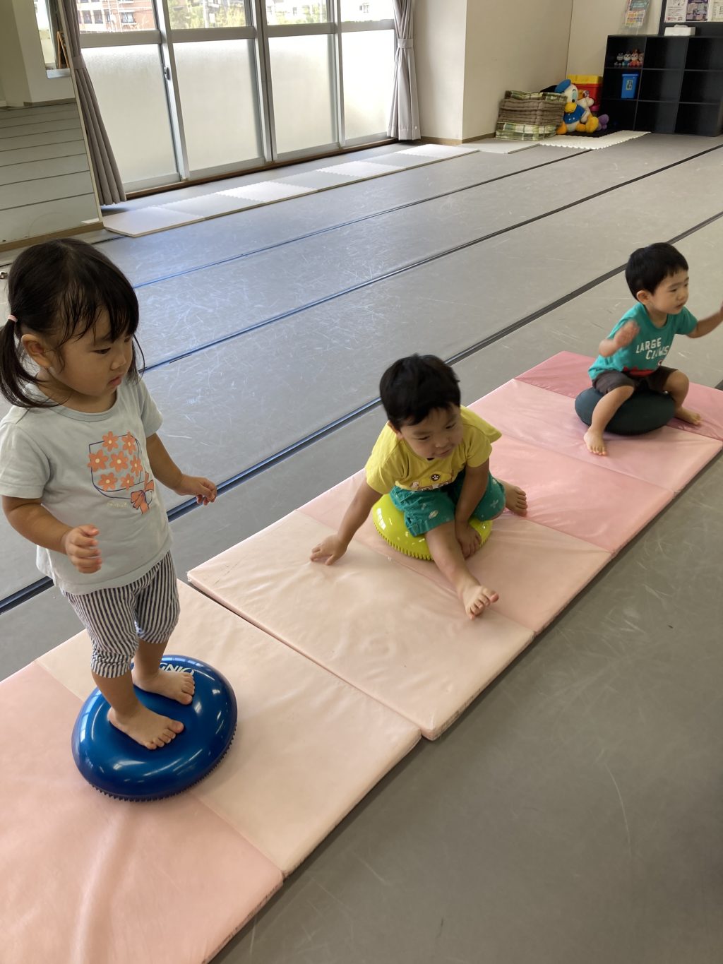 ひよこ組は今日も元気にお部屋でたくさん遊んだよ りす組はねずみ組のお部屋に行かせてもらい遊んだよいろんなおもちゃがいっぱい 楽しかったね ねずみ組さんはダンスの日 最初は体操からスタートです おもちさんに乗って、バランス …