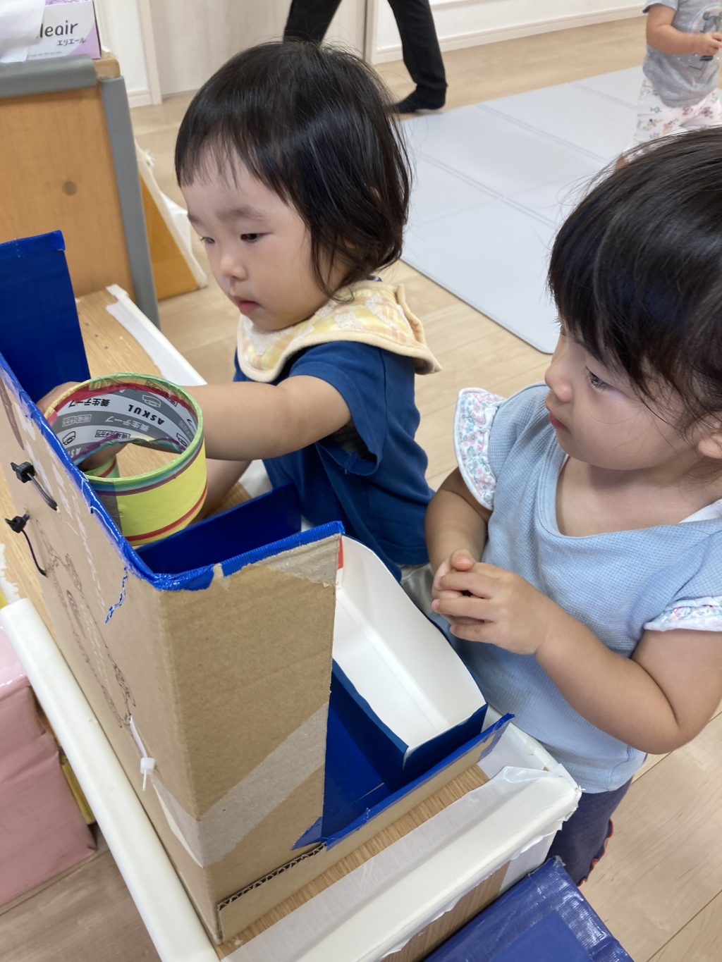 今日はひよこ組とりす組はお外にバスやトラックを見に行きました りす組は靴下や靴を自分で履いたよ りす組は製作をしました お部屋でもたくさん遊びました ねずみ組さんは製作をしたり、お部屋で好きなおもちゃで遊んだりしました …