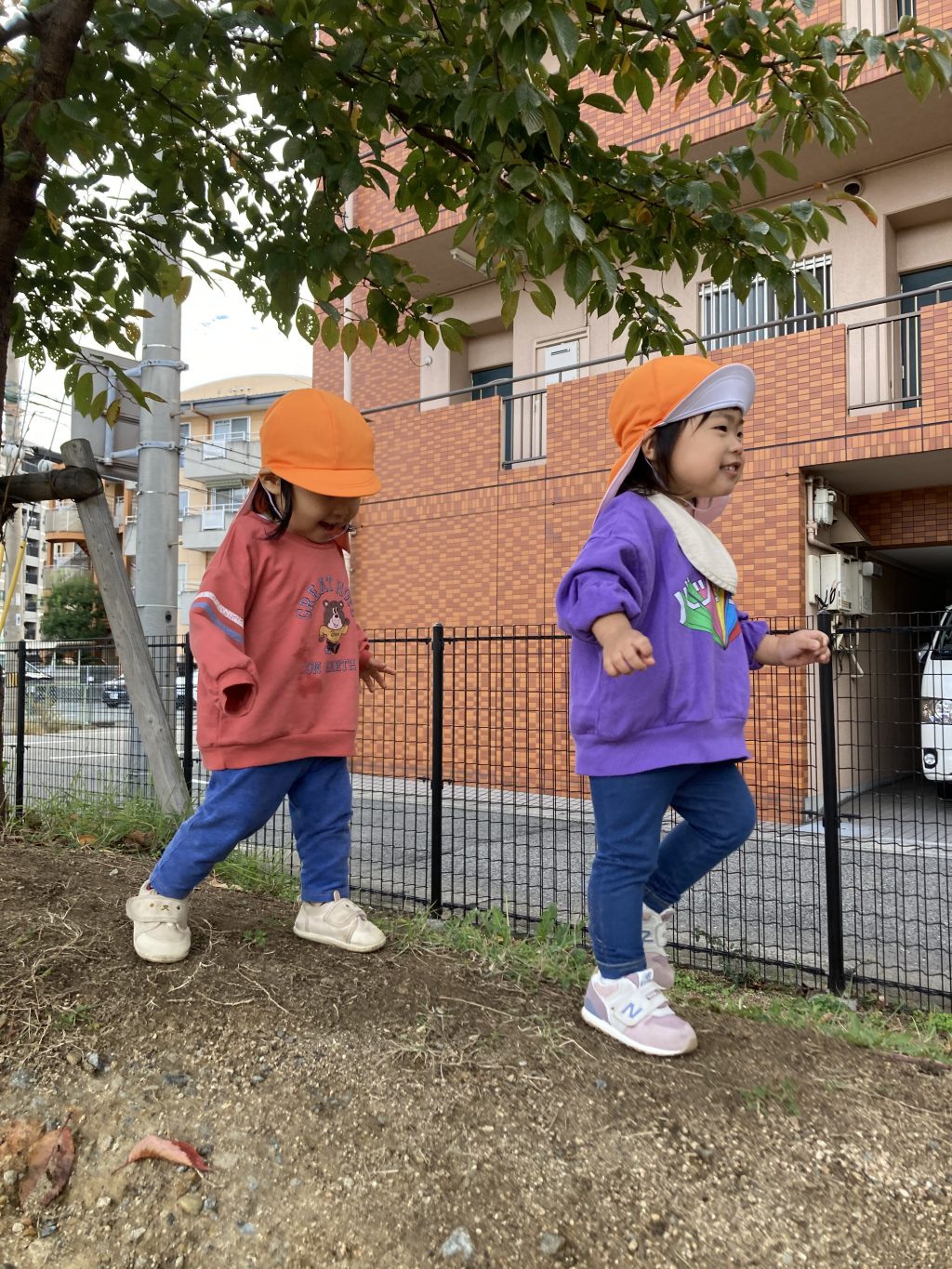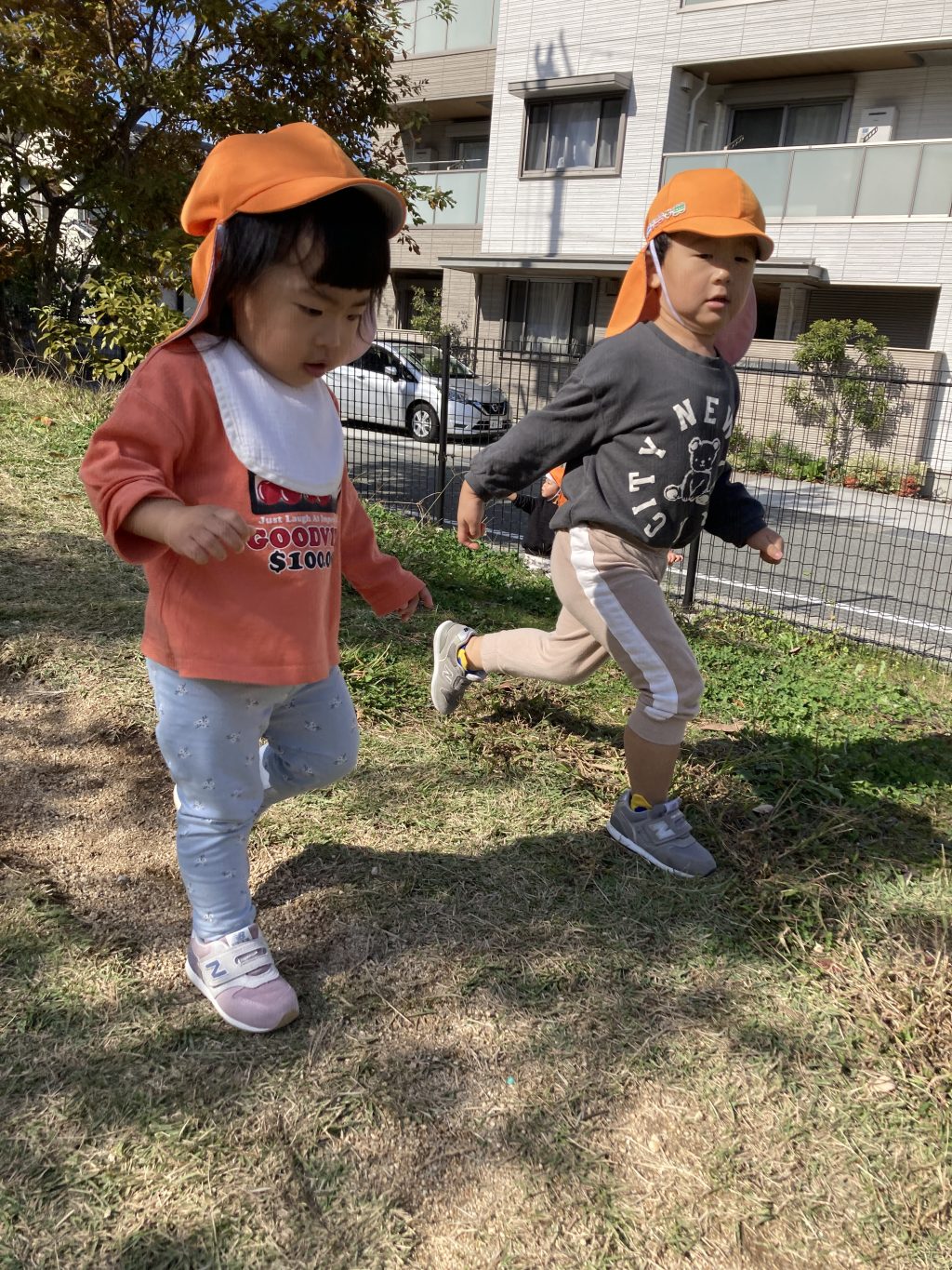 今日もいい天気で公園へ行きました みんなでよーいどんかけっこしたよ ドングリや落ち葉も見つけました ねずみ組はダンスの日でした フープも上手にくぐれたよ