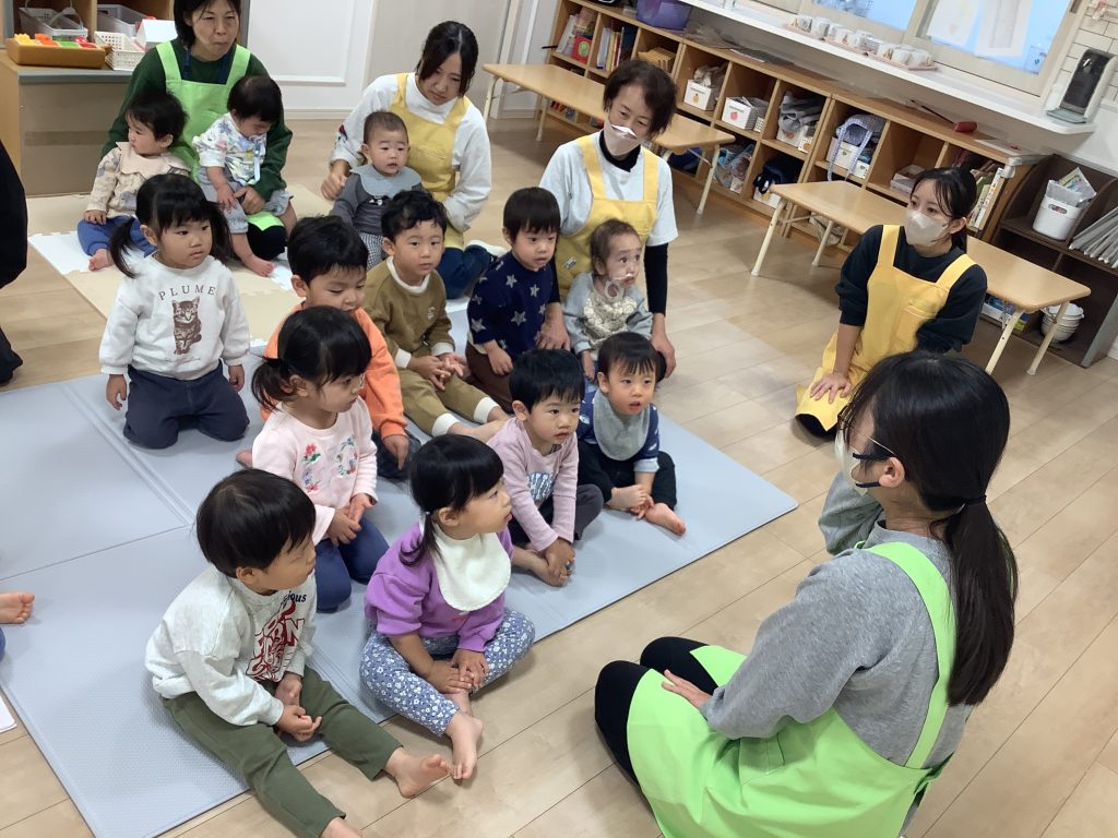 今日は11月生まれのお友だちのお誕生日会でした みんなで集まって絵本を読んでもらいました お名前を呼んでもらって元気にお返事できたよ 11月生まれのお友だちの登場です みんなにおめでとうとお祝いしてもらったよ 11月生ま …
