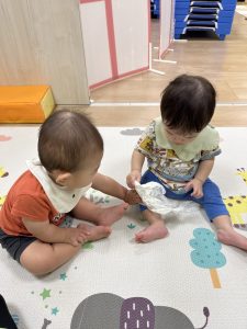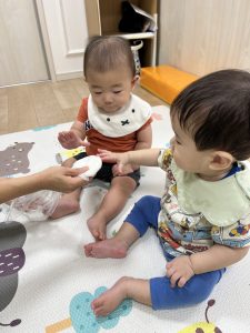 ツンツンと触ってみたり、ちぎったりと楽しんでいました