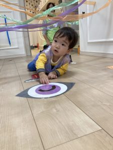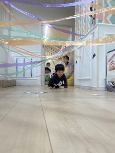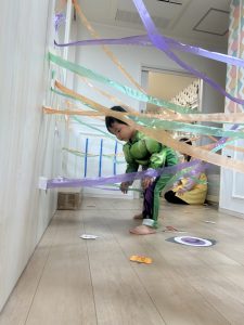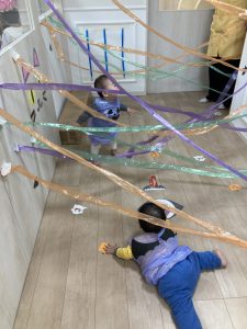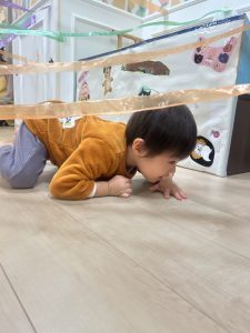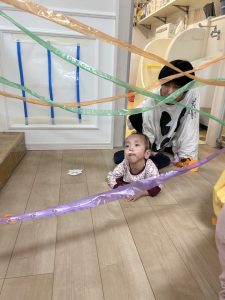 クモの巣の中をハイハイしたり、歩いてみたりして遊んだよ