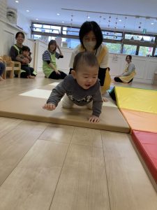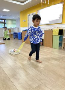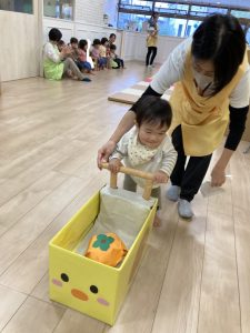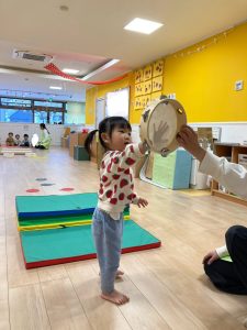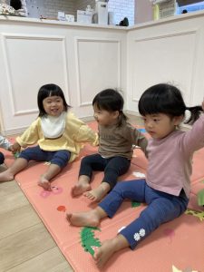 『しあわせならてをたたこう』の歌に合わせてお友だちと手をつないだよ