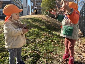 ねずみ組さんとりす組さんは仲良く手を繋いで公園へ