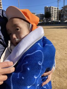 公園では風が冷たかったので、たくさん走ったよ