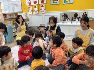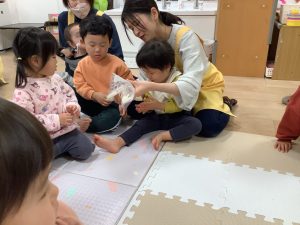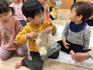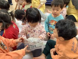 みんなで触ったり「よいしょ」って持ってみたりしたよ