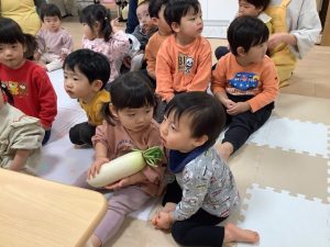 さぁ、大きな大根を先生が切ってくれたよ!