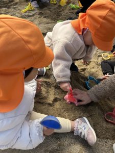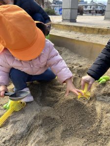 お山を作ったり、型抜きに砂を入れてパカッと型を抜いたりと、夢中になって楽しんでいました