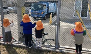 みんなゴミ収集車に夢中ですほっとした顔