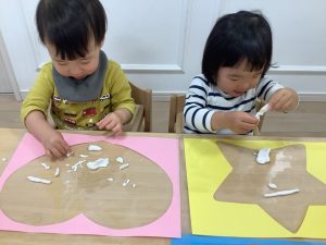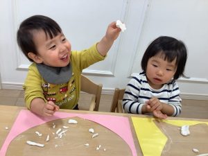 お部屋では、りす組さんは米粉粘土で遊びました