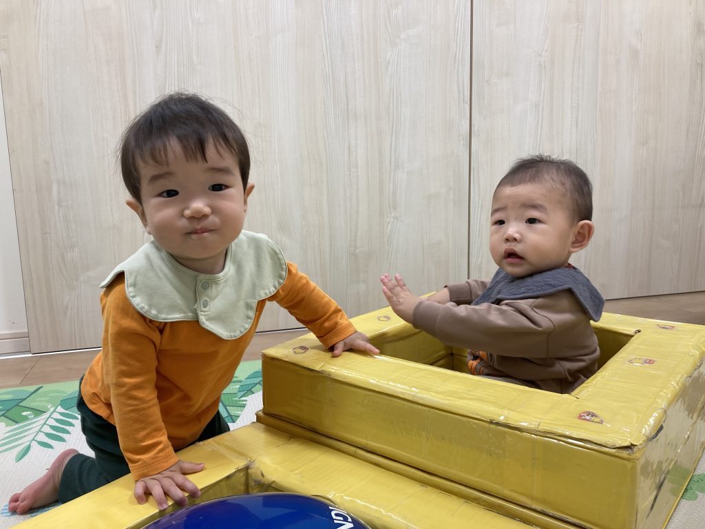 部屋の中を元気に遊ぶひよこ組さん つかまり立ちをしておもちゃに手を伸ばしてみたり、1人で立つことができて笑みを見せてくれたりと、楽しんでいますよ 後ろ姿もかわいい りす組さんは月刊絵本にシール貼りをしたよ ハロウィンに向 …