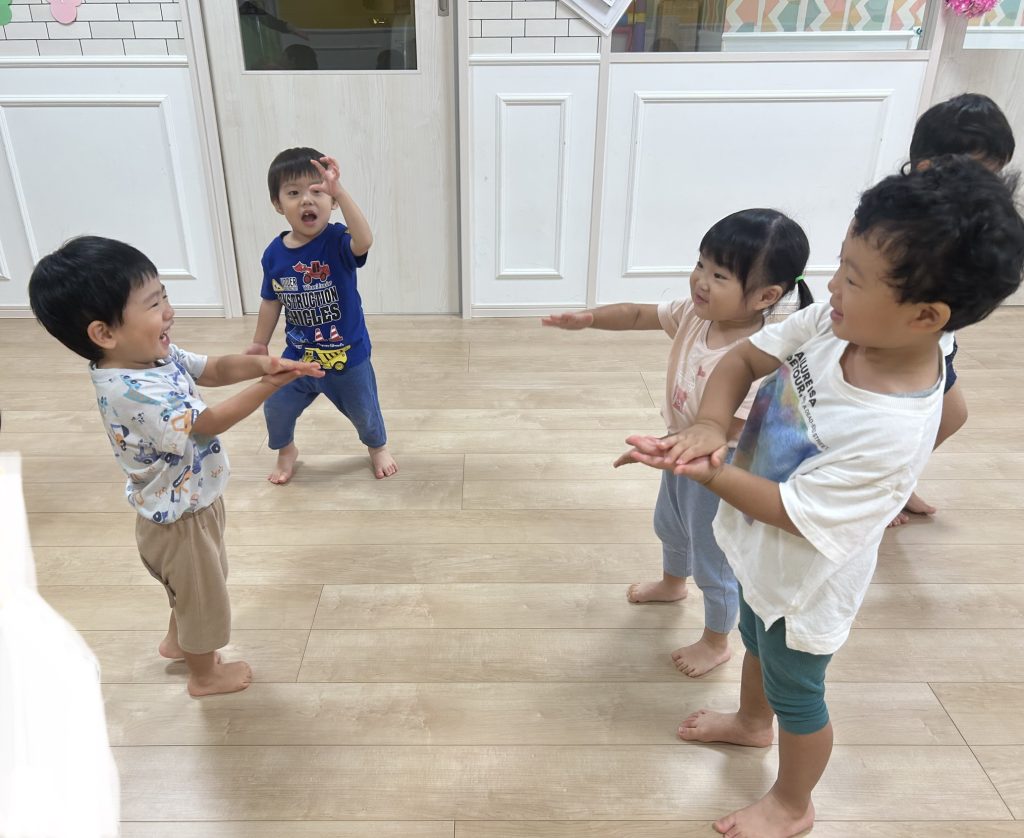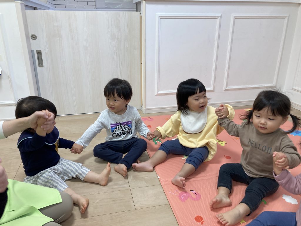 親子フェスタではこんなことするよ 実際にやってみたり、お友だちを応援したりしたよ お部屋遊びでの様子 『しあわせならてをたたこう』の歌に合わせてお友だちと手をつないだよ おててぎゅっぎゅ楽しいね おやつ変更しています