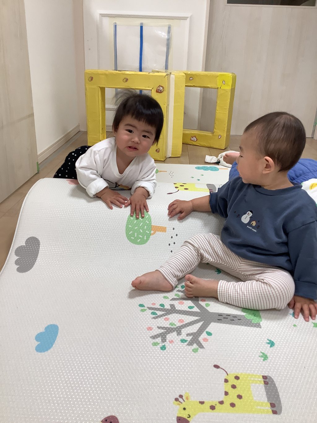 ねずみ組さんはダンスに行きました 今日は縄を踏まないようにジャンプ✨するよ グルグル、走れー ボールをキーック りす組、ひよこ組はねずみ組さんのお部屋で遊びました 椅子に座って絵本を見ています 沢山のおもちゃ、嬉しいね …