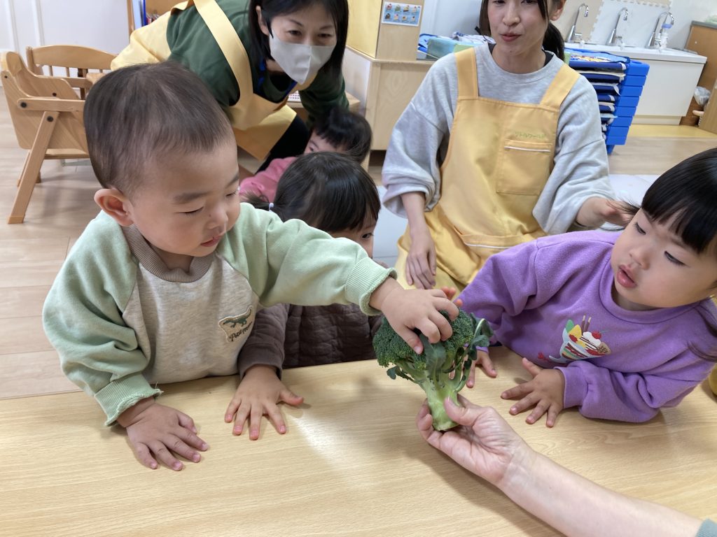 今月の食育はブロッコリーでした ブロッコリーを触ったり匂いを嗅いだりしました 給食でもブロッコリーが出て嬉しそうに食べていました 先生やお友達と手を繋いで公園へ行きました ひっつきむしが服について一生懸命とっていましたよ …