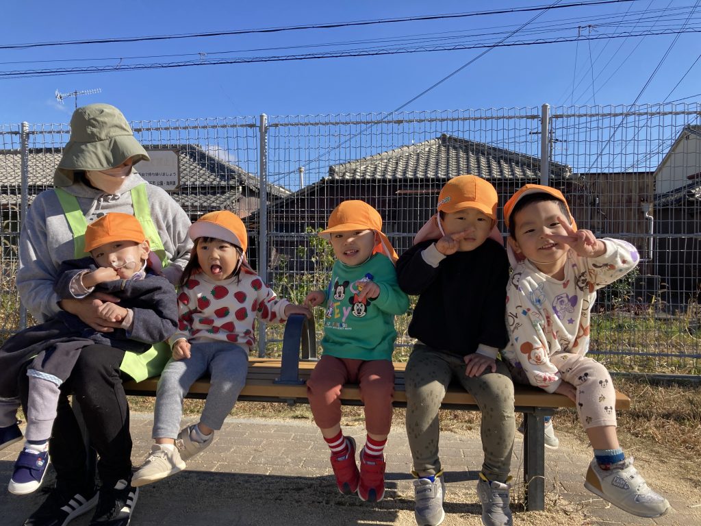 今月のSDGsも先生の話をしっかりと聞いていました 今日もお天気が良かったので公園でたくさん遊びました 体をたくさん動かした後は、座って休憩タイムです