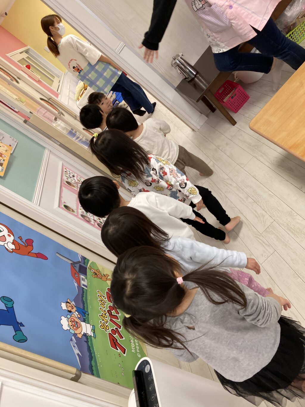 今日はつぼみ、にじ組さんはアンパンマンおもちゃと乗り物のおもちゃで遊びました☺️