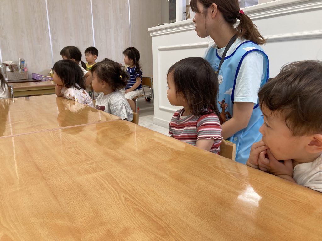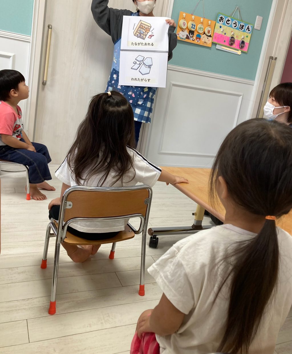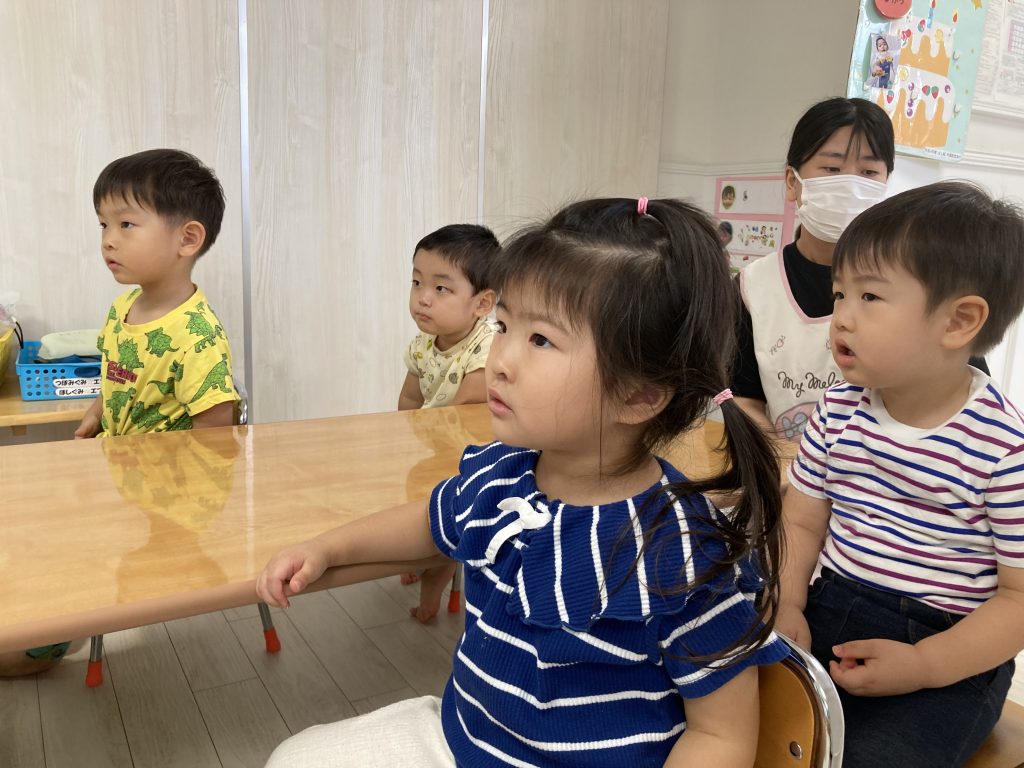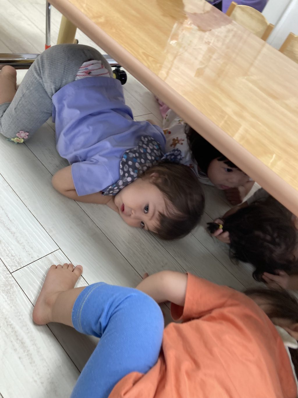 実際の避難訓練では、とっても上手に机の下へ隠れ、頭を守ることができました