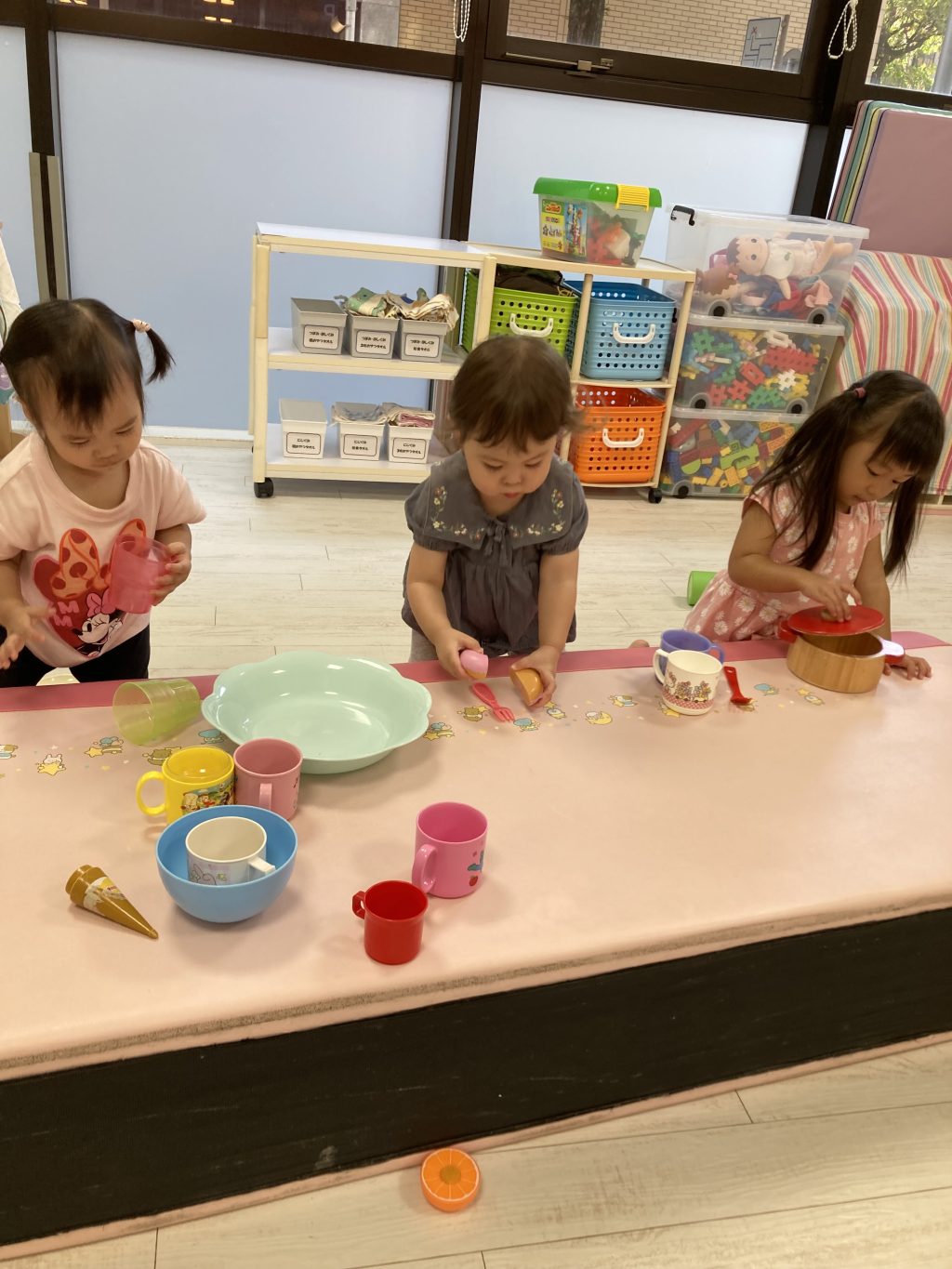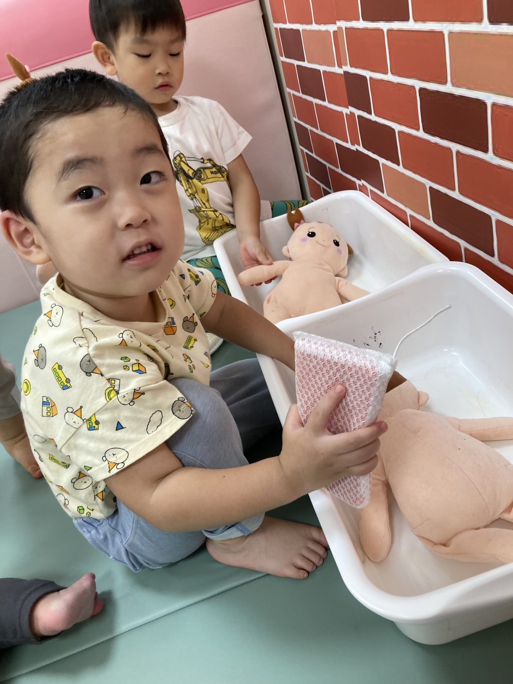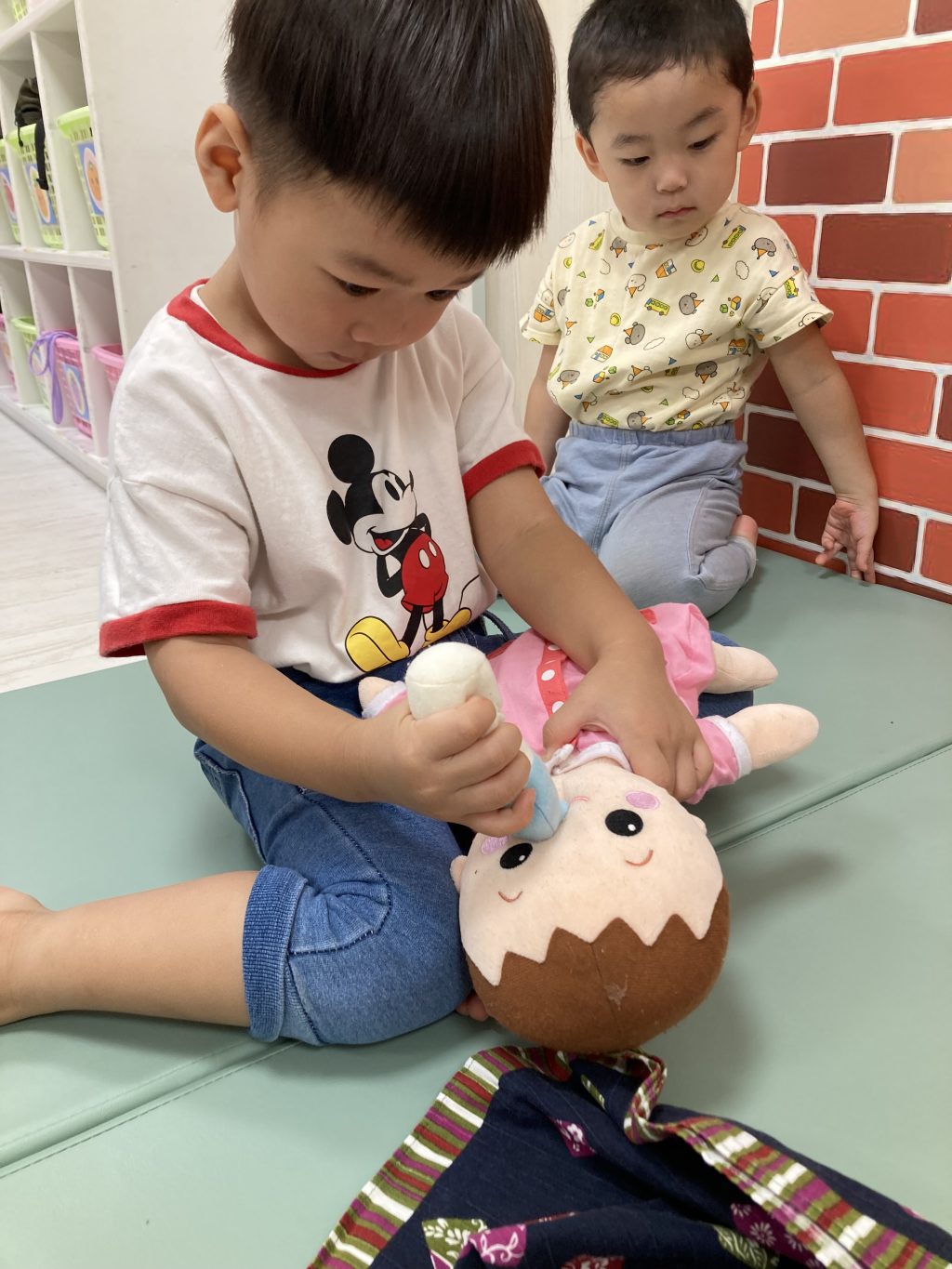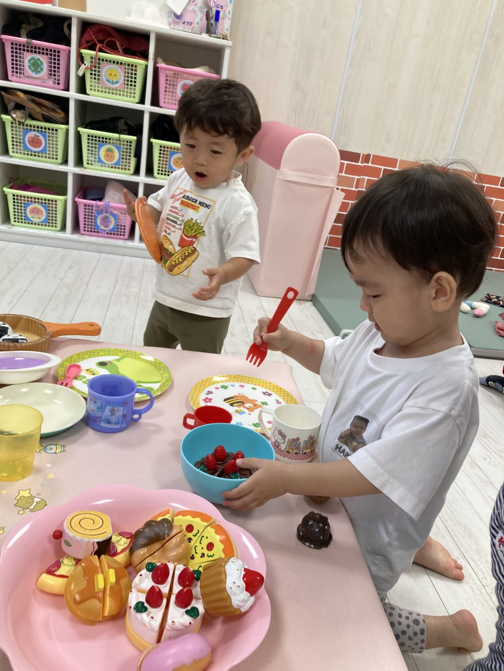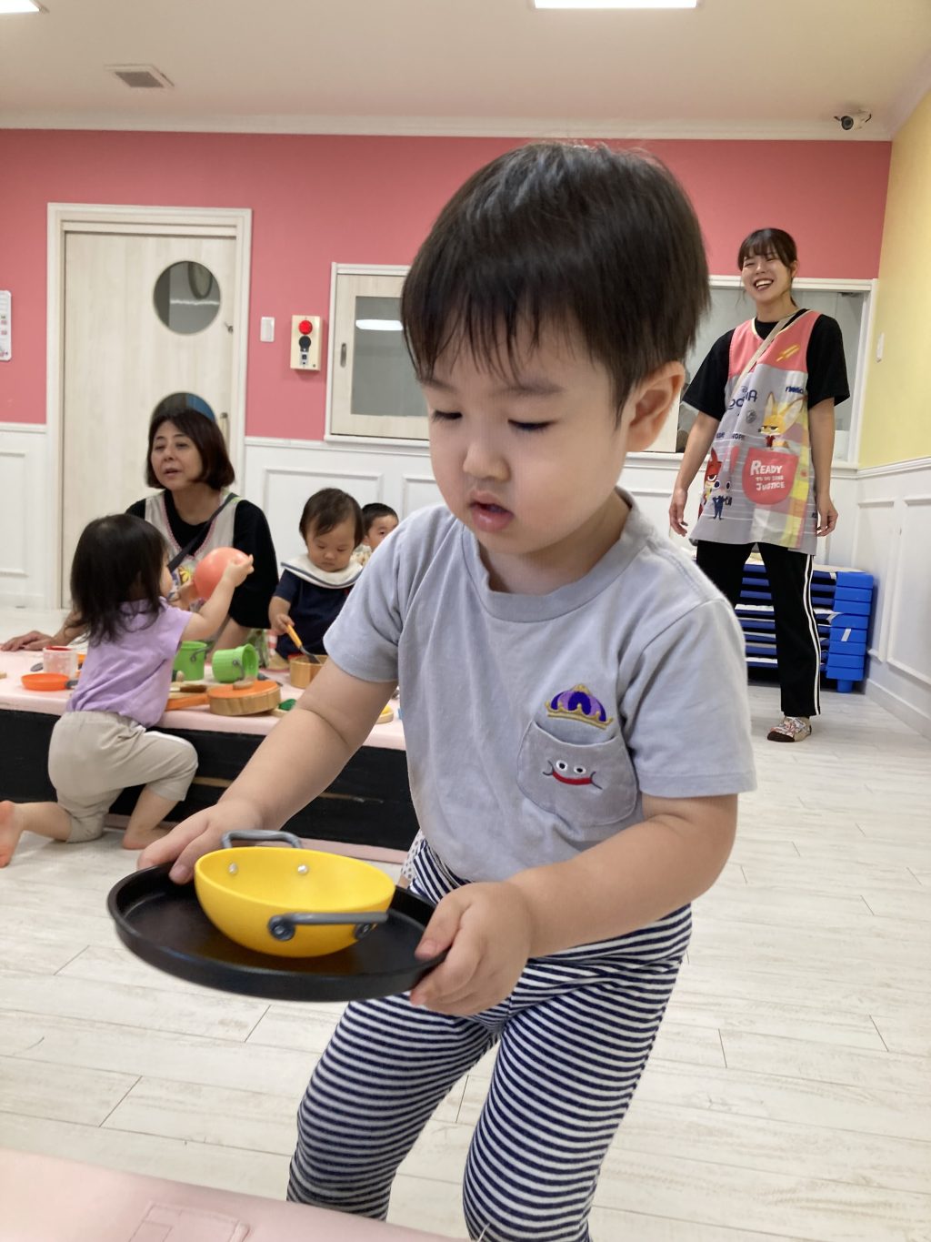 赤ちゃんのお世話したりウエイターさんになったりしていました♪