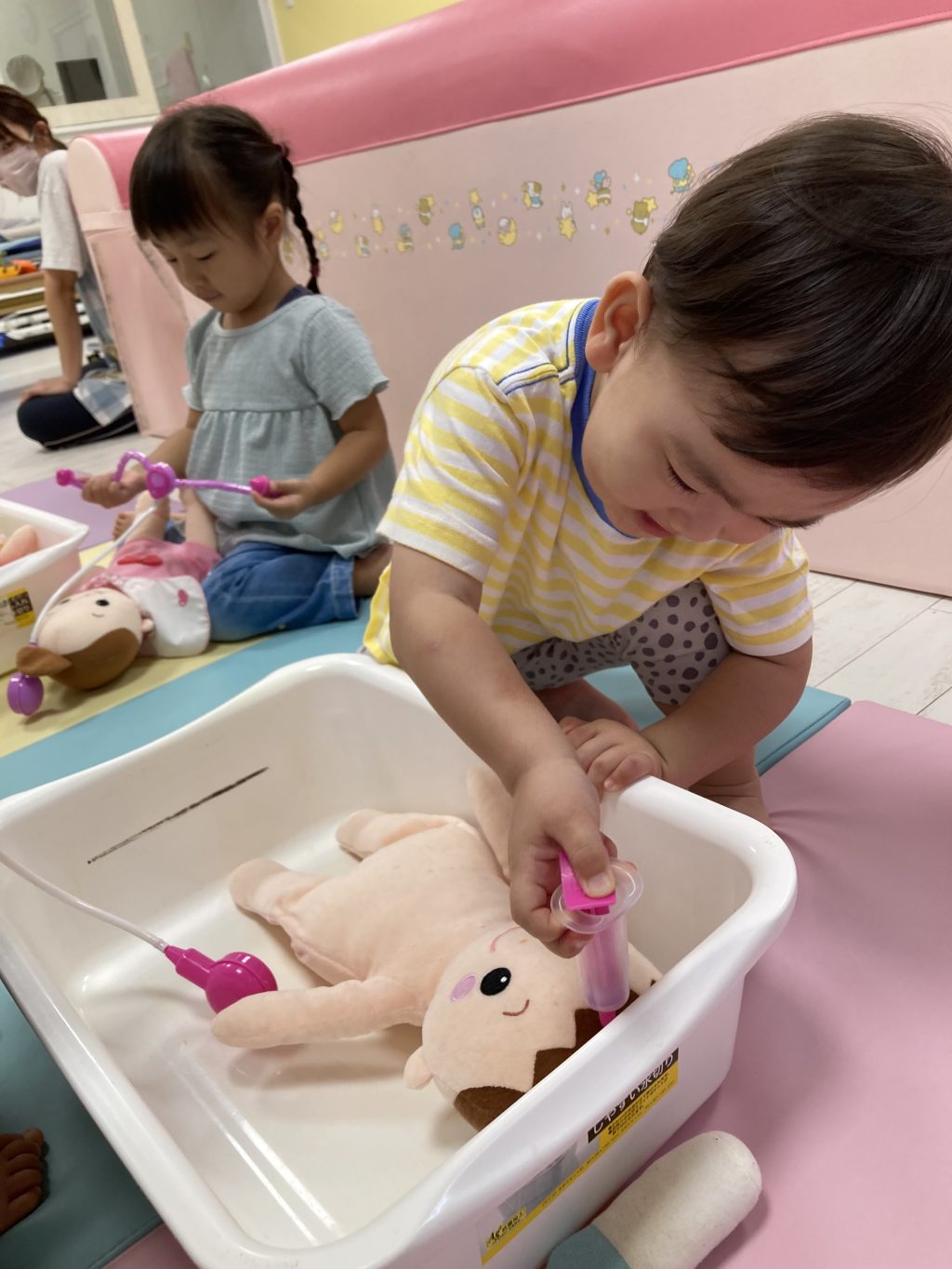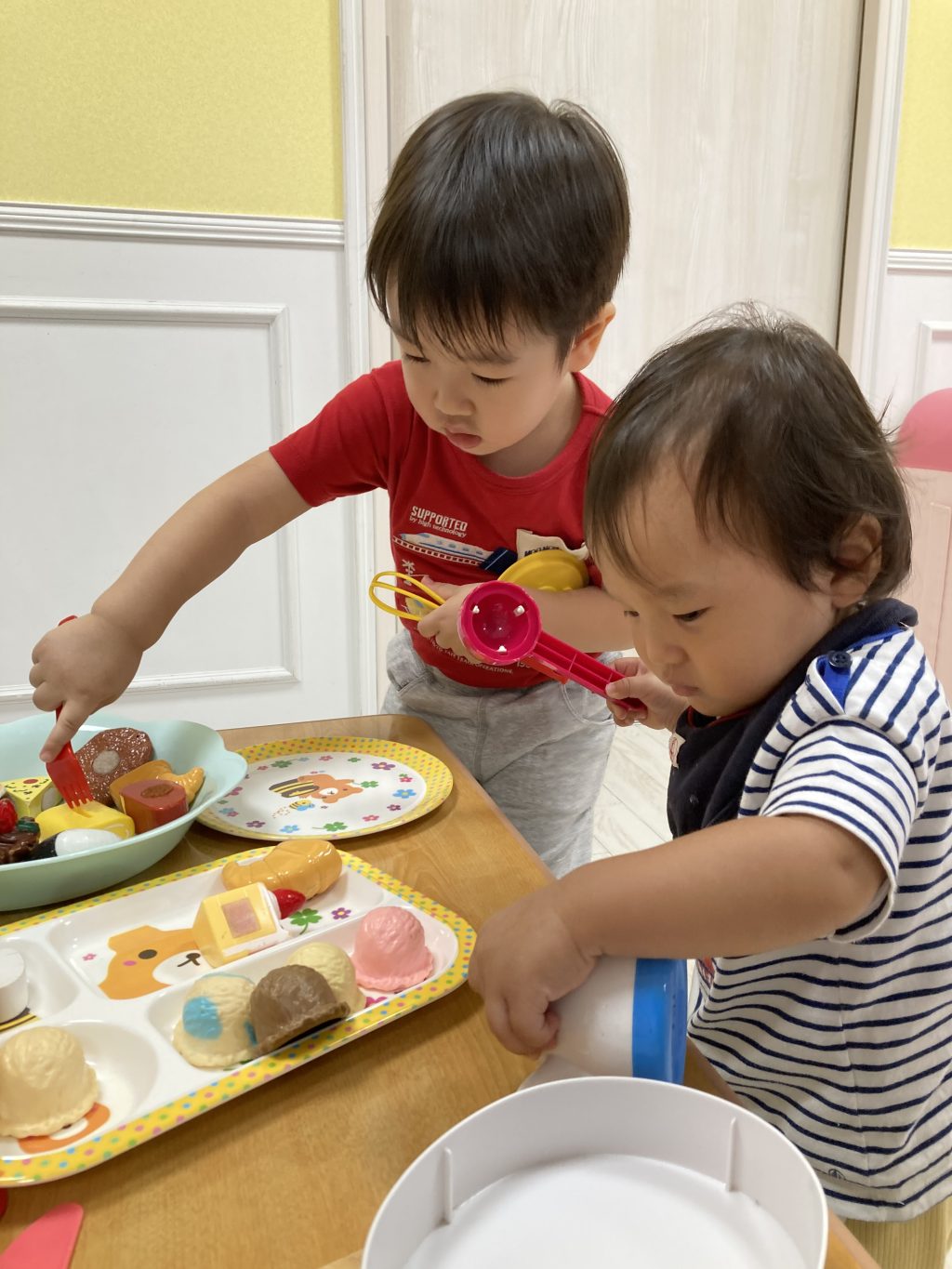 今日はおままごととブロック遊びをしました!見立て遊びが上手になっていて、夢中になって楽しんでいました
