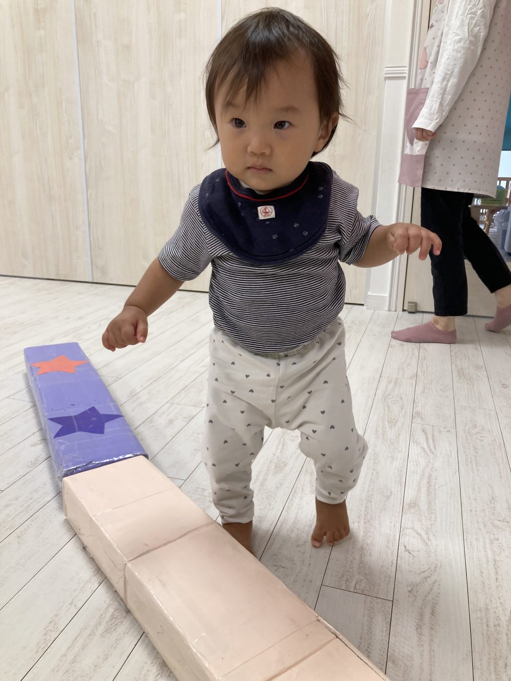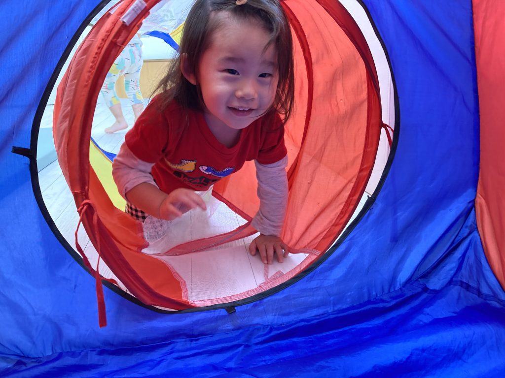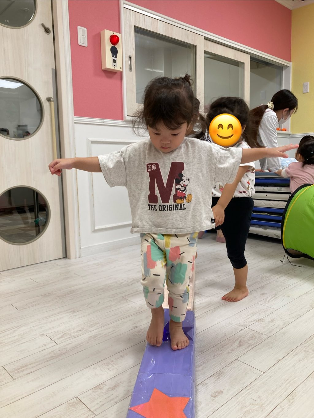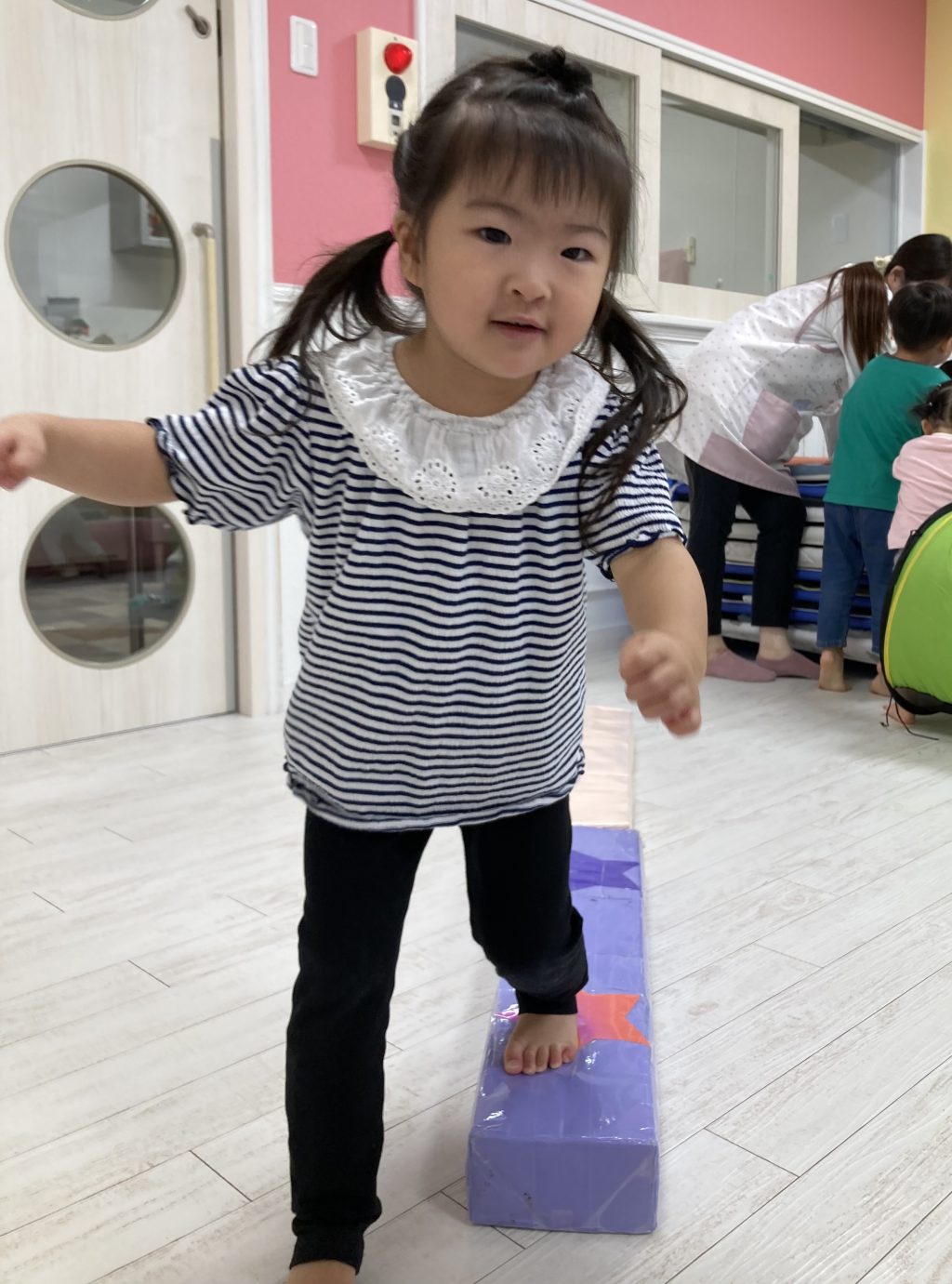 マットのすべり台や、トンネル、平均台を使って身体をたくさん動かして楽しんでいました