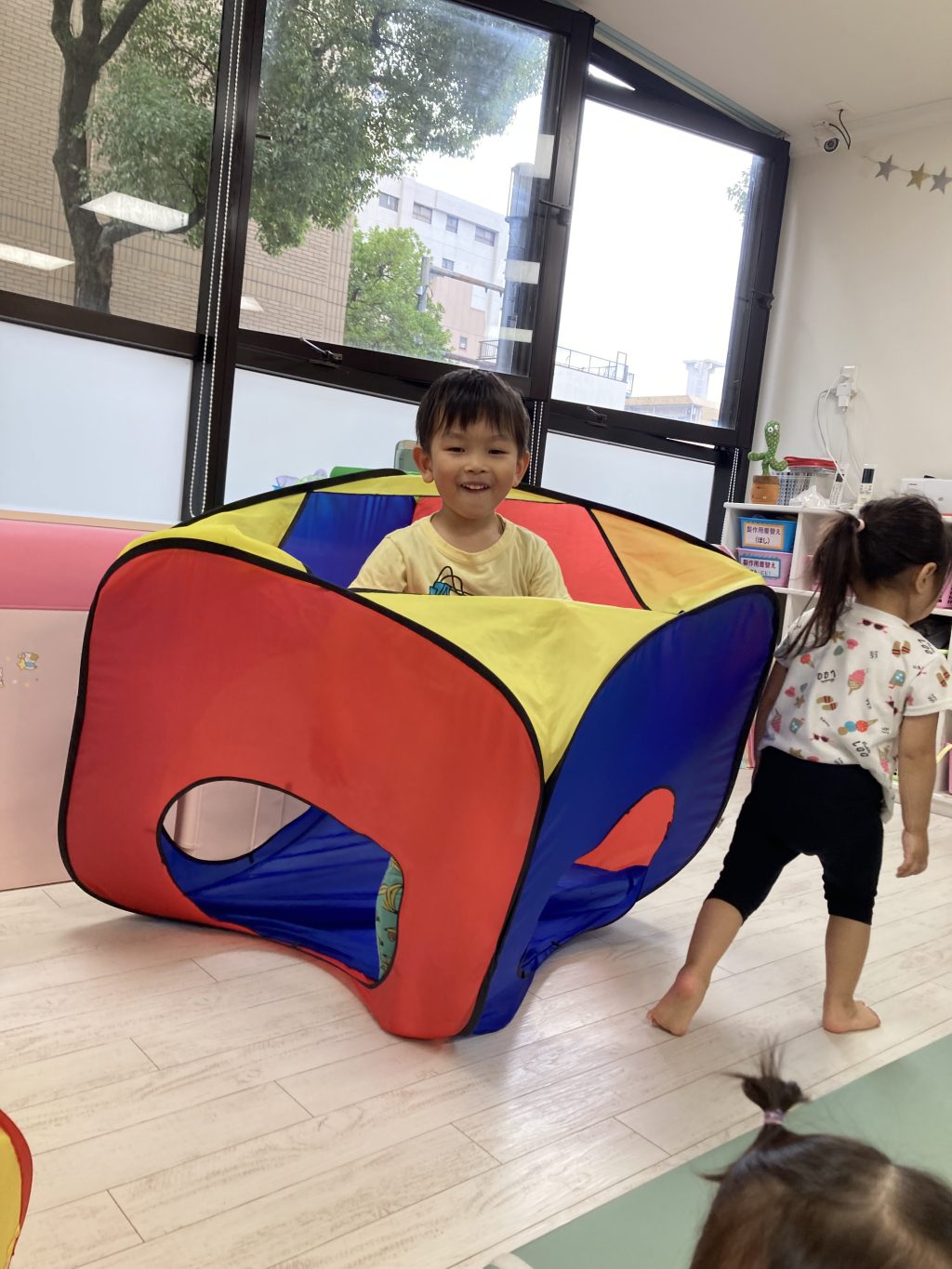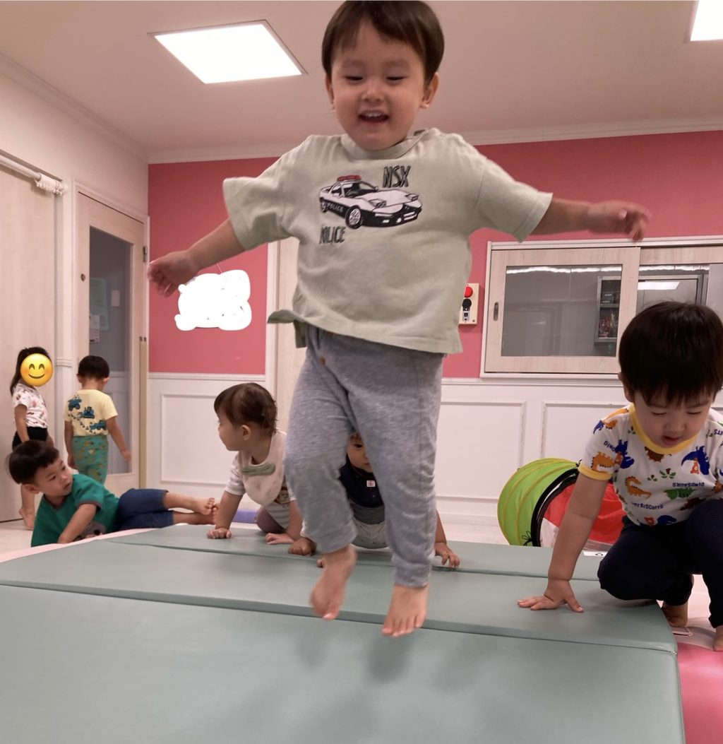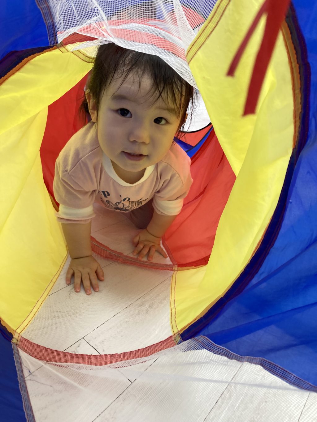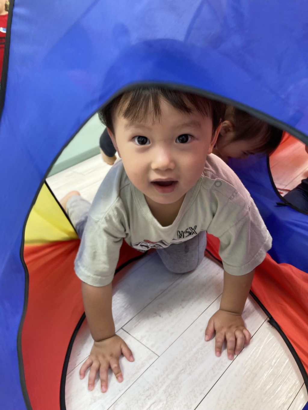 マットのすべり台や、トンネル、平均台を使って身体をたくさん動かして楽しんでいました