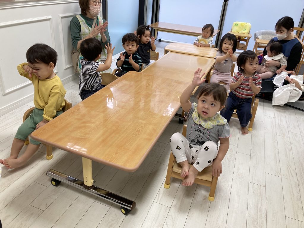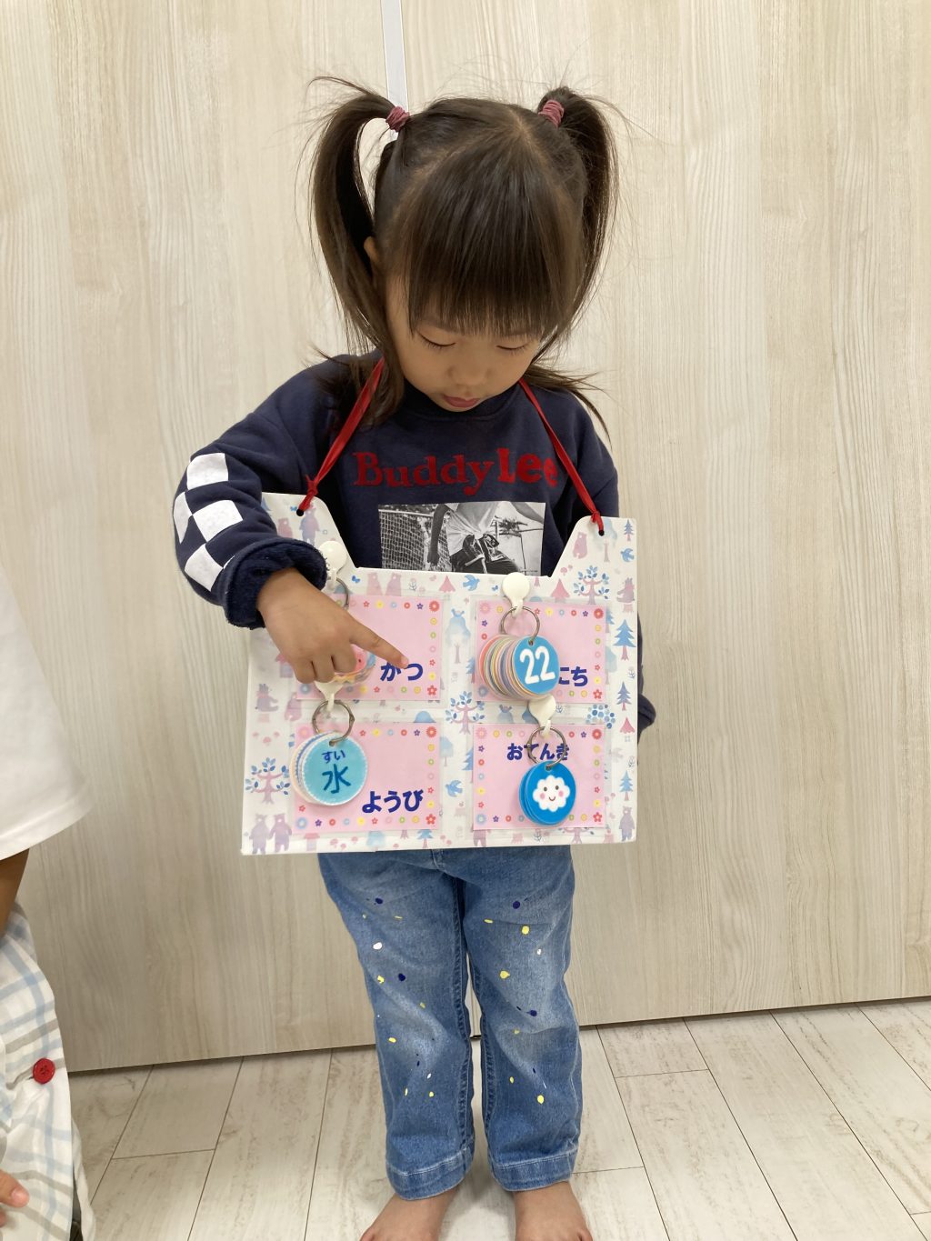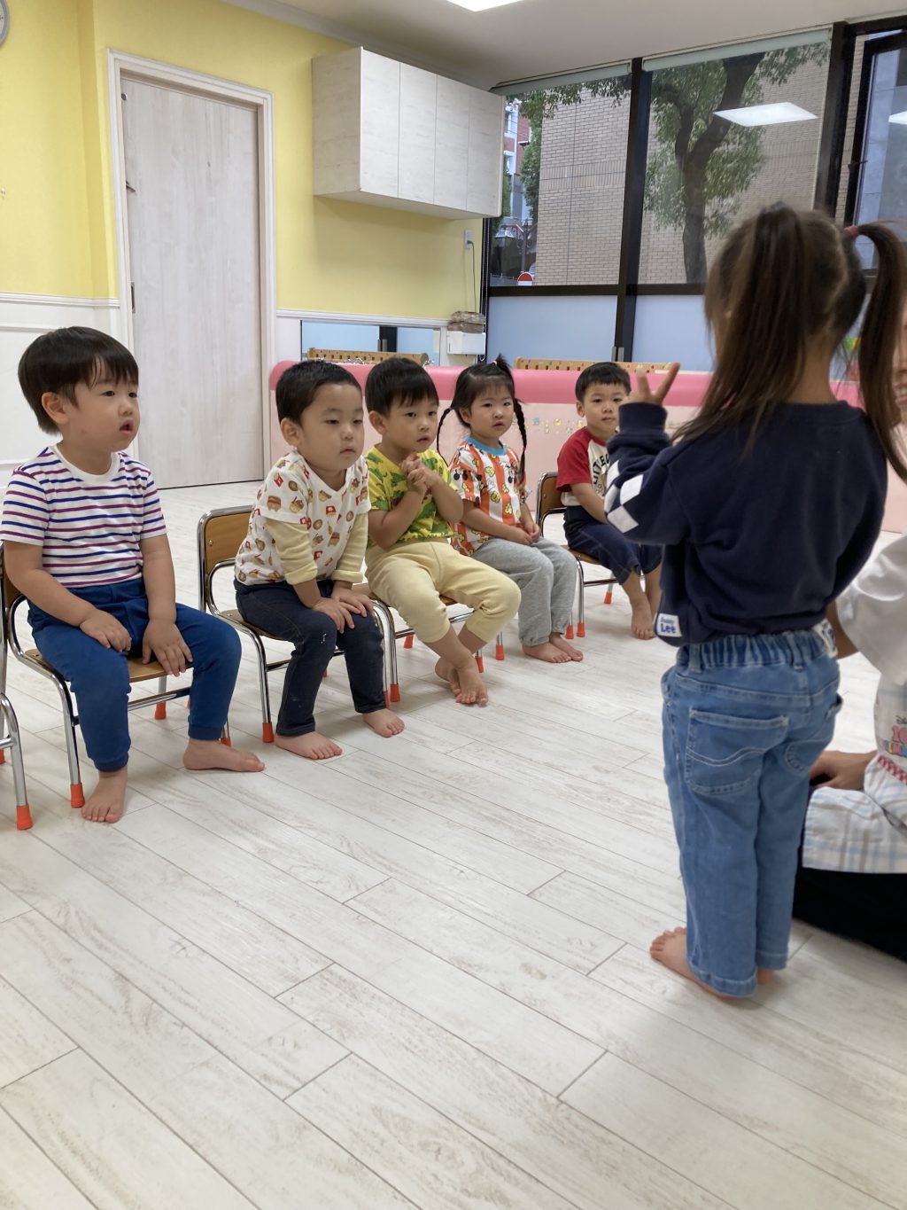 今日の朝の会の様子です♪最近はにじ組とほし組分かれて朝の会をしています!