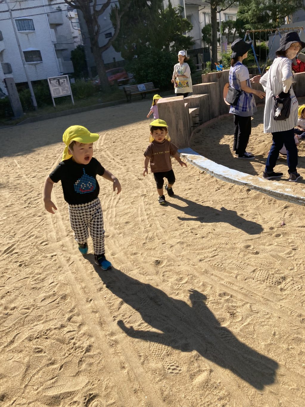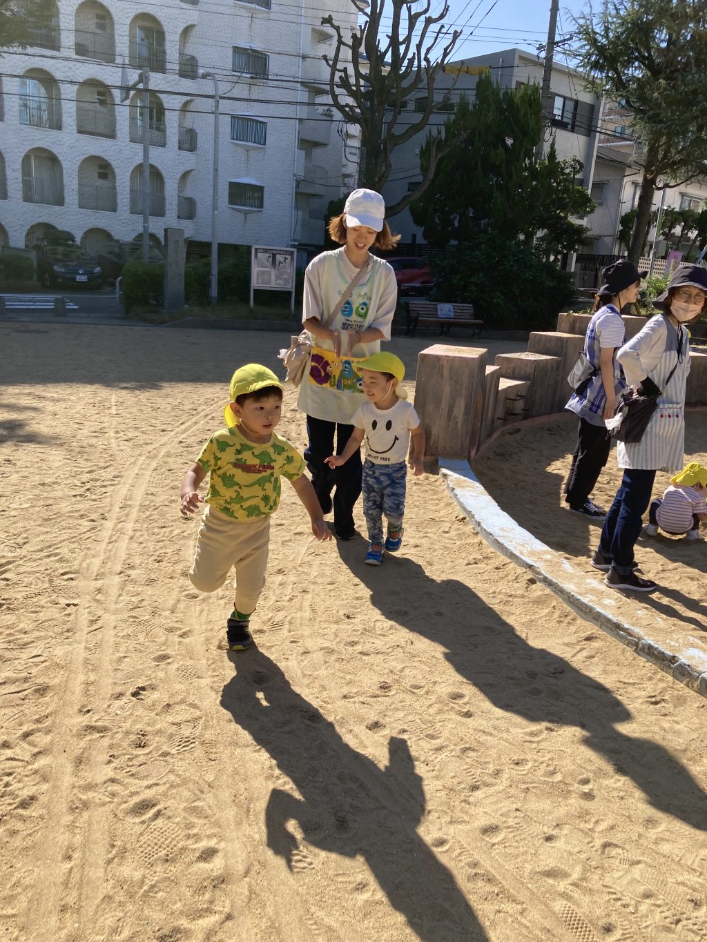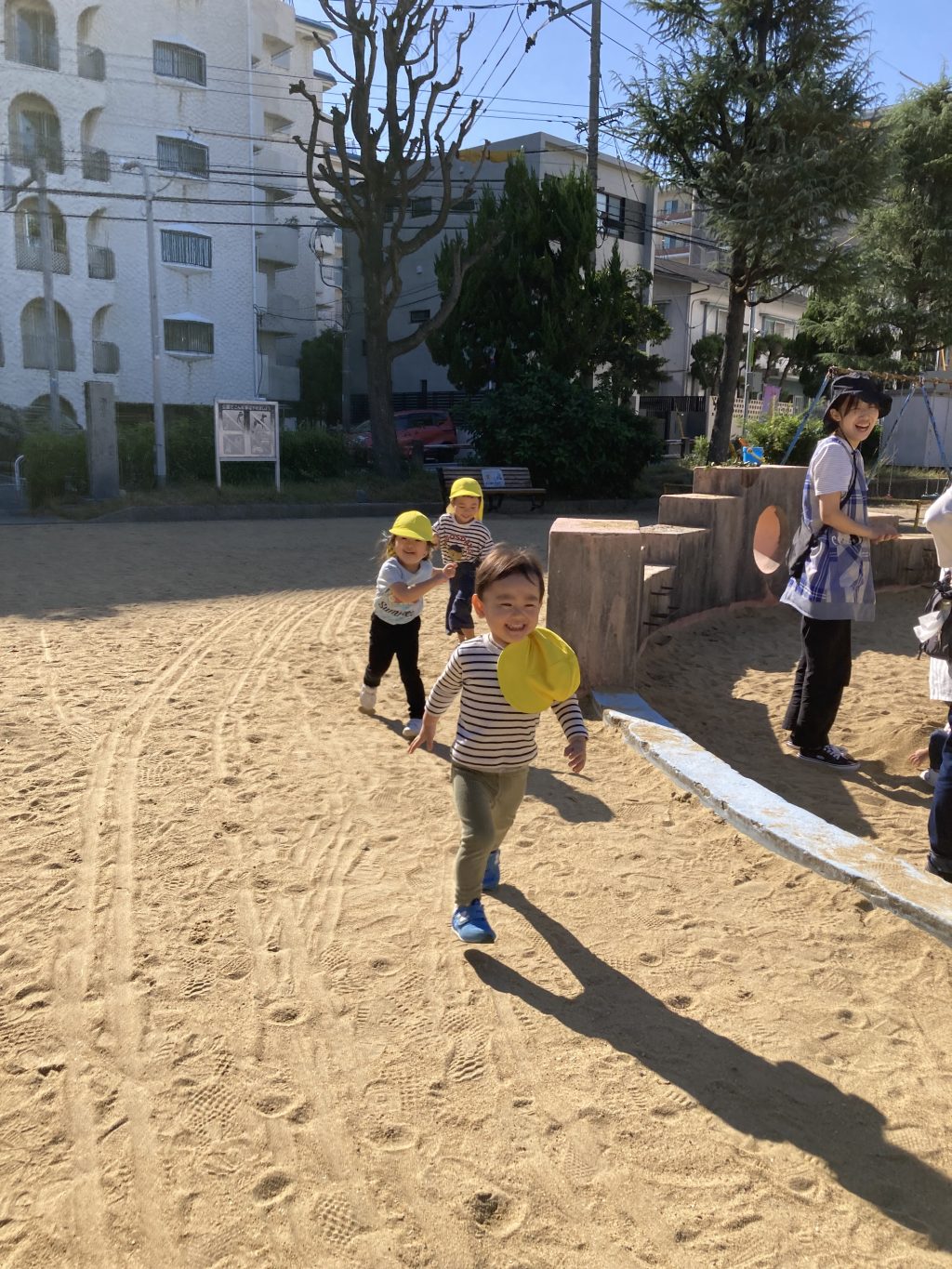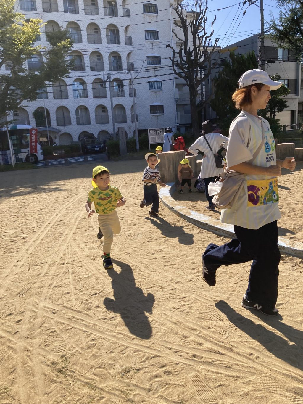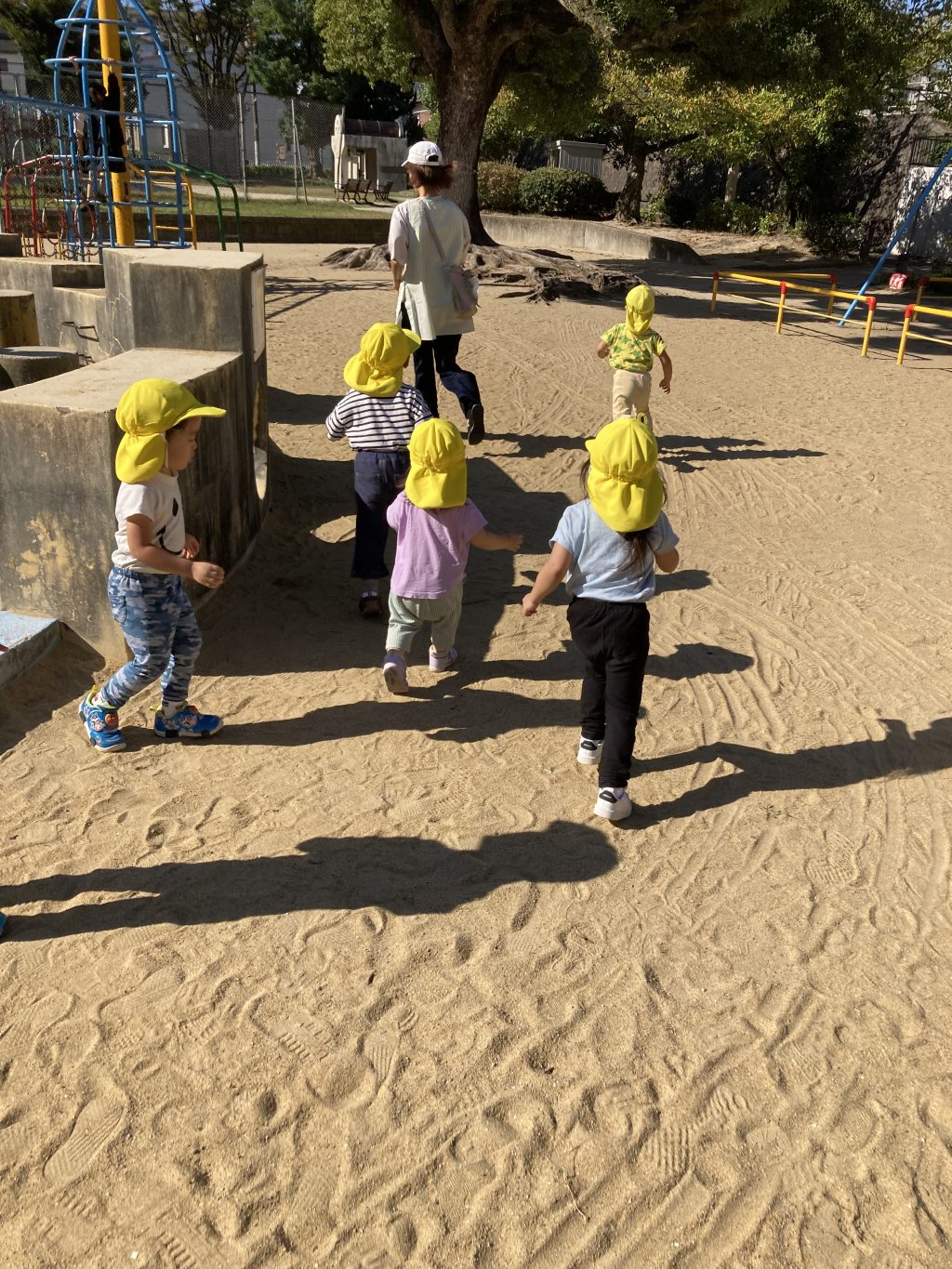 まずは公園であそんだのですが、先生の後に続いて、いっぱい走りました