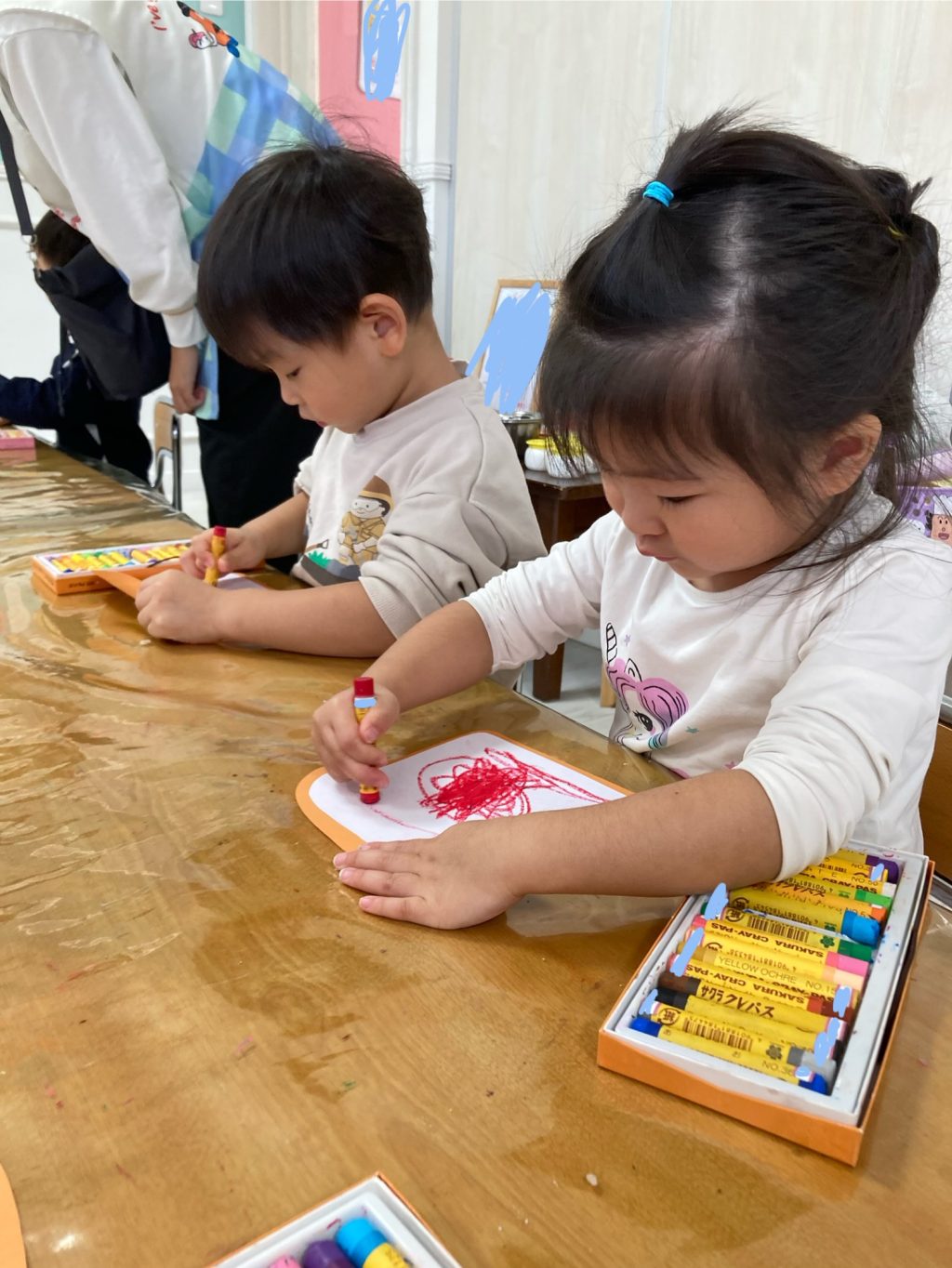 ほし組さんは『ぱんどろぼう』の製作をしました♪ はさみの使い方も少しずつ上手になってきました✨ にじ組さんは『ミノムシ』の製作をしました!