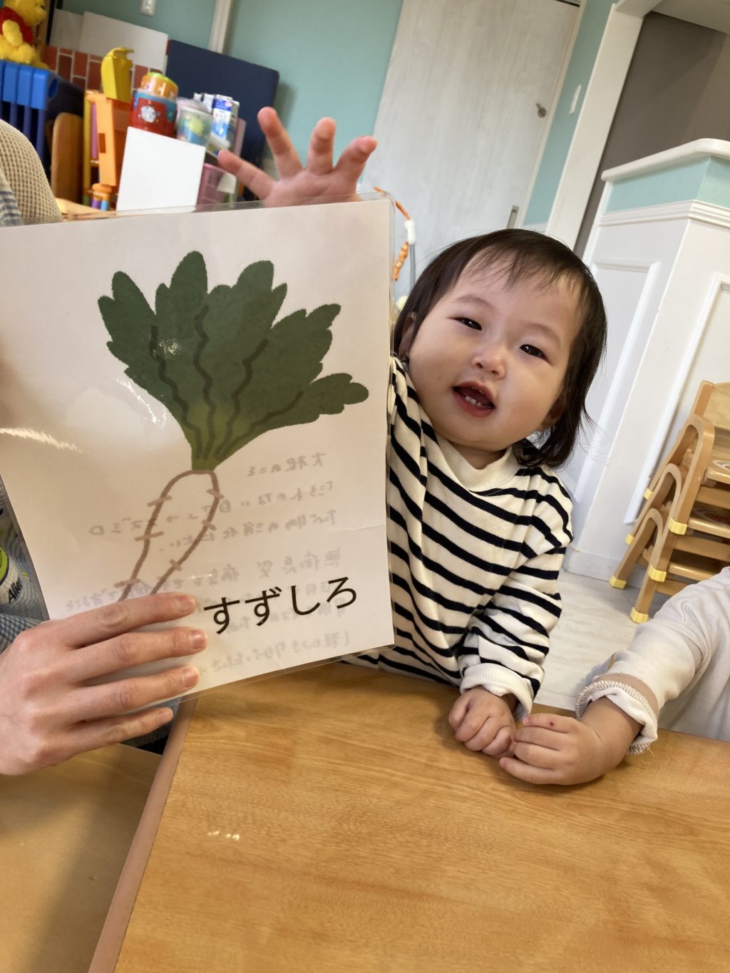 今日のおやつに七草粥がでるので