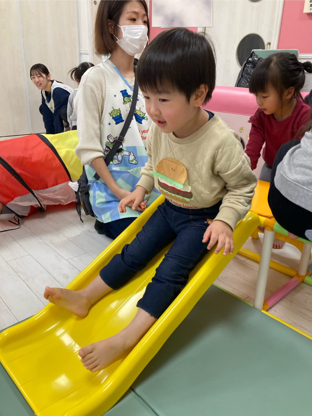 ジャングルジムや滑り台を出していると、子どもたちはワクワクして待ちきれない様子でしたよ♡
