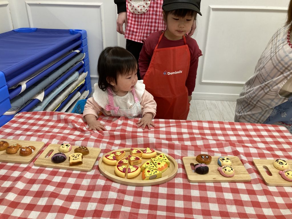 パン屋さんジュース屋さん八百屋さんに別れて、「いらっしゃいませ〜!」と大きなお声で売っていました♡