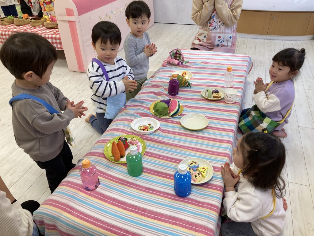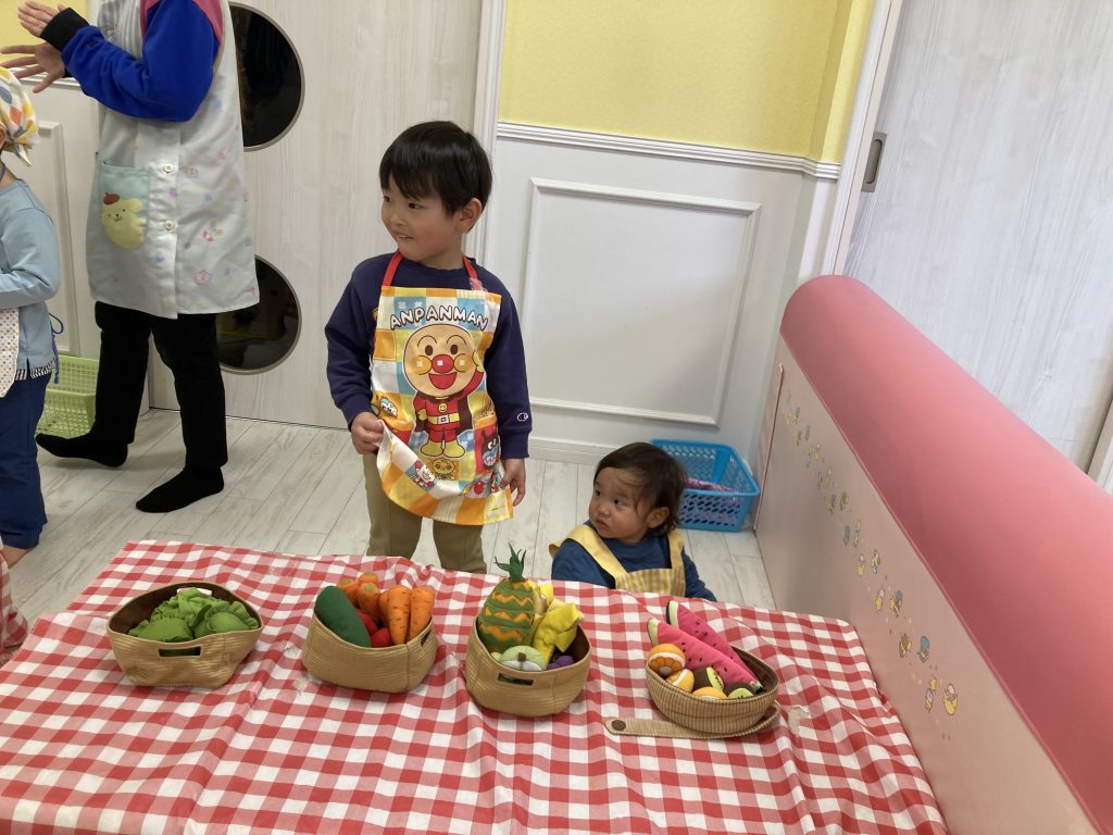 お客さん役のお友だちも、買う数を守って好きな物を選んで、お金もしっかり払って買っていましたよ♪