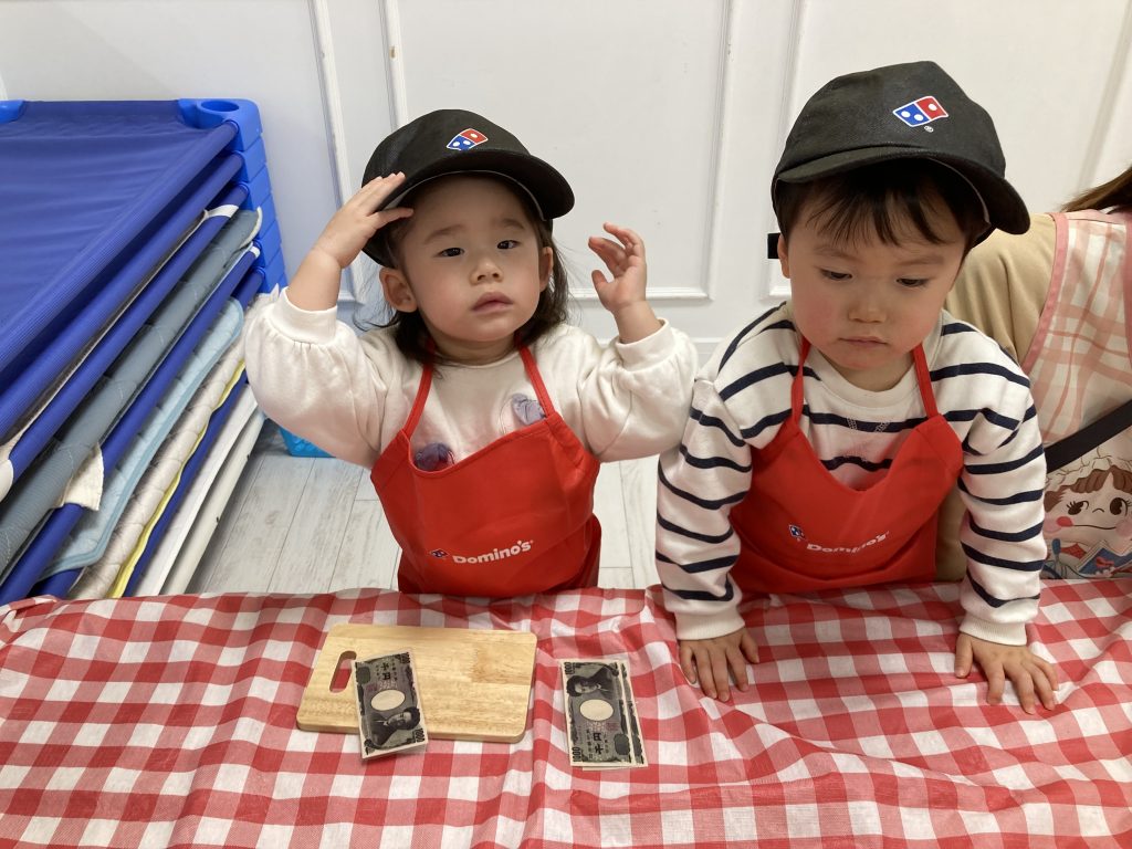 お話しを聞いた後は、お店屋さんごっこをしました‼︎実際に店員さんと買う人に分かれてお金を払って買うという体験をしました!